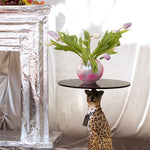Making a bold impression in any room of the house, the Proudly Crowned Panther Side Table is brimming with playful character. Made from painted resin, this panther exudes a majestic sense of power. A glass tabletop sits atop the panther’s head like an elegant crown, providing the perfect platform for drinks, remotes, or even decorative pieces.