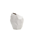 Textured white ceramic counteracts the almost jagged appearance of the vase to create a sense of unrefined beauty and character. Its muted colour scheme means it is especially suited to contemporary and minimalist interiors.