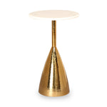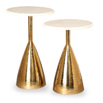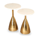Featuring tabletops crafted from smooth, white marble, these tables are endlessly classy, and their textured, conical bases possess an element of geometric appeal. Further enhancing the design is an aged brass finish which adds a lovely, polished sheen.