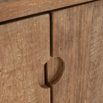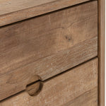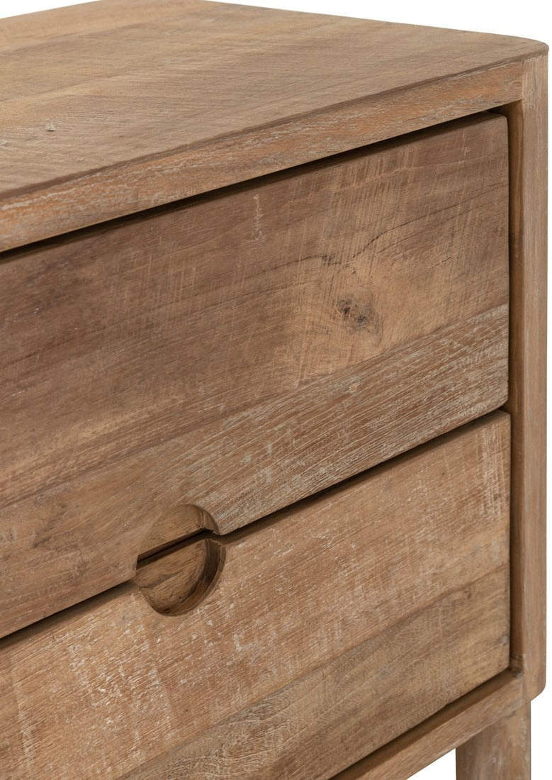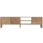 Crafted from reclaimed teakwood, this beautifully grained piece adds natural warmth and rich texture to any room. Two doors open to reveal generous cupboard storage, while two spacious drawers and open shelves offer additional organisation, making it as practical as it is stylish. With clean lines and subtle detailing, it’s a versatile addition to both modern and rustic interiors.