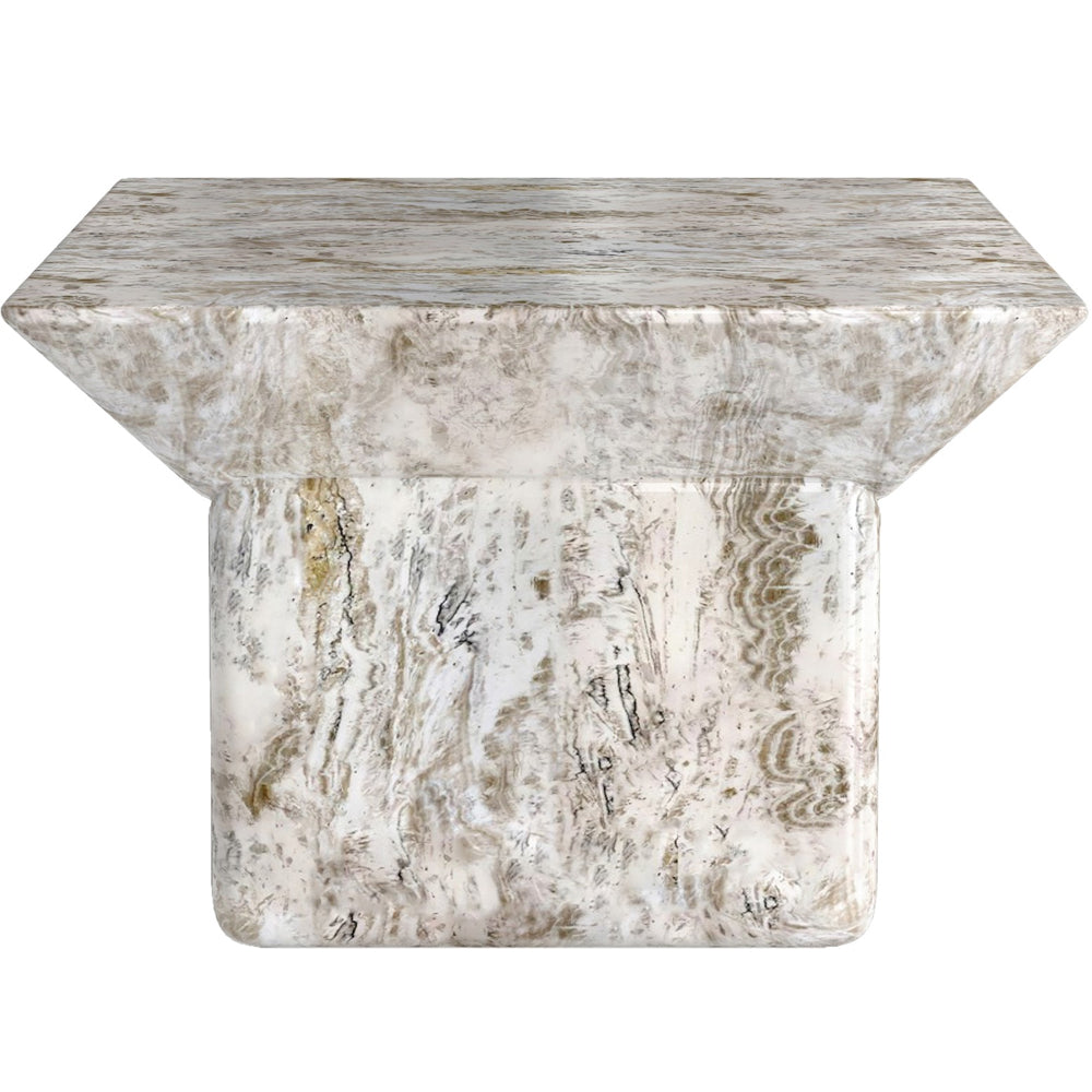 Crafted from Glass Fiber Reinforced Concrete, this table boasts superior strength and durability, yet is lighter than traditional concrete. Its white, grey, and brown faux marble finish provides a bold pop of color that will complement contemporary or Art Deco spaces. The abstract, prism-shaped tabletop is supported by two chunky legs, infusing your space with a sense of whimsy, while its robust construction ensures longevity.