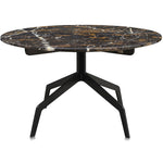 Poised on four streamlined, matt black stainless steel legs, this piece emanates an air of elegance and refinement. The delicate, spider-like formation of the legs adds a touch of modern flair, while the stunning round marble tabletop sits atop them. This table flawlessly combines functionality with aesthetic appeal, boasting an innate sense of contemporary glamour.