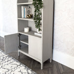 Designed to be versatile, it boasts exposed shelving for all of your sculptures, photographs and floral displays, and further shelving concealed behind a pair of doors to help you keep your space nice and neat. It really is the perfect multi-purpose cabinet.