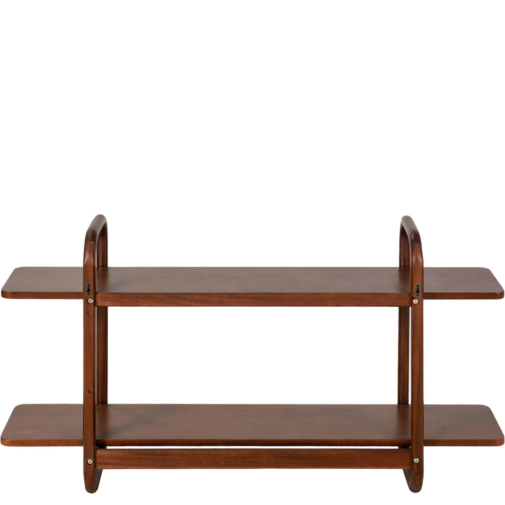 Crafted from mahogany with a light roasted coffee finish, it offers timeless appeal, enhanced by softly rounded edges on the shelves and frame. Two spacious shelves provide ample space for books, ornaments, and photographs, allowing you to display your favourite pieces with style and ease.