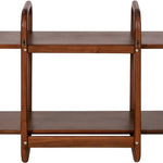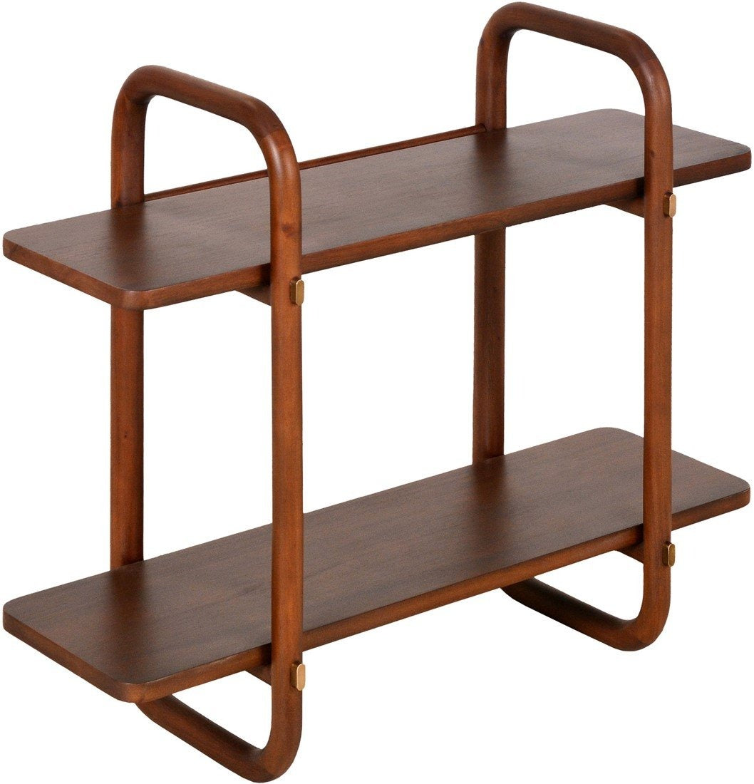 Crafted from mahogany with a light roasted coffee finish, it offers timeless appeal, enhanced by softly rounded edges on the shelves and frame. Two spacious shelves provide ample space for books, ornaments, and photographs, allowing you to display your favourite pieces with style and ease.