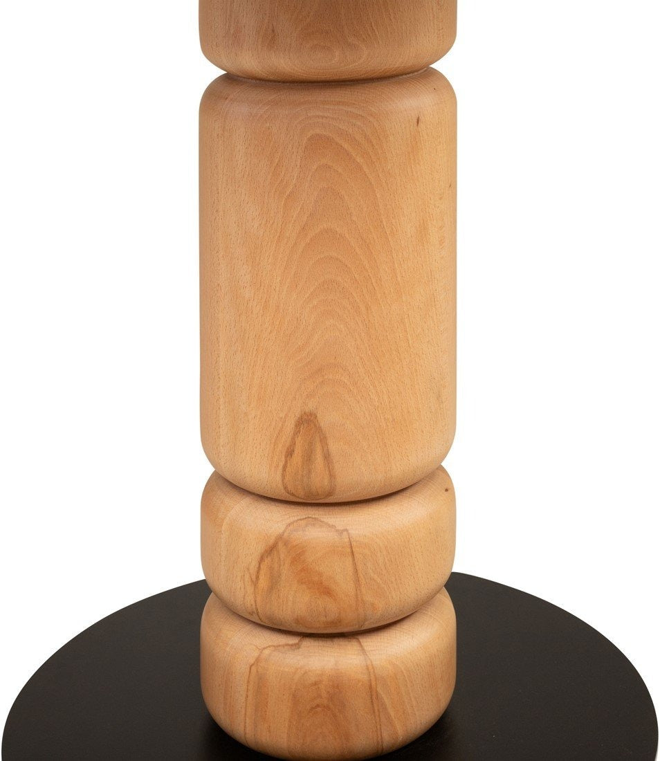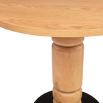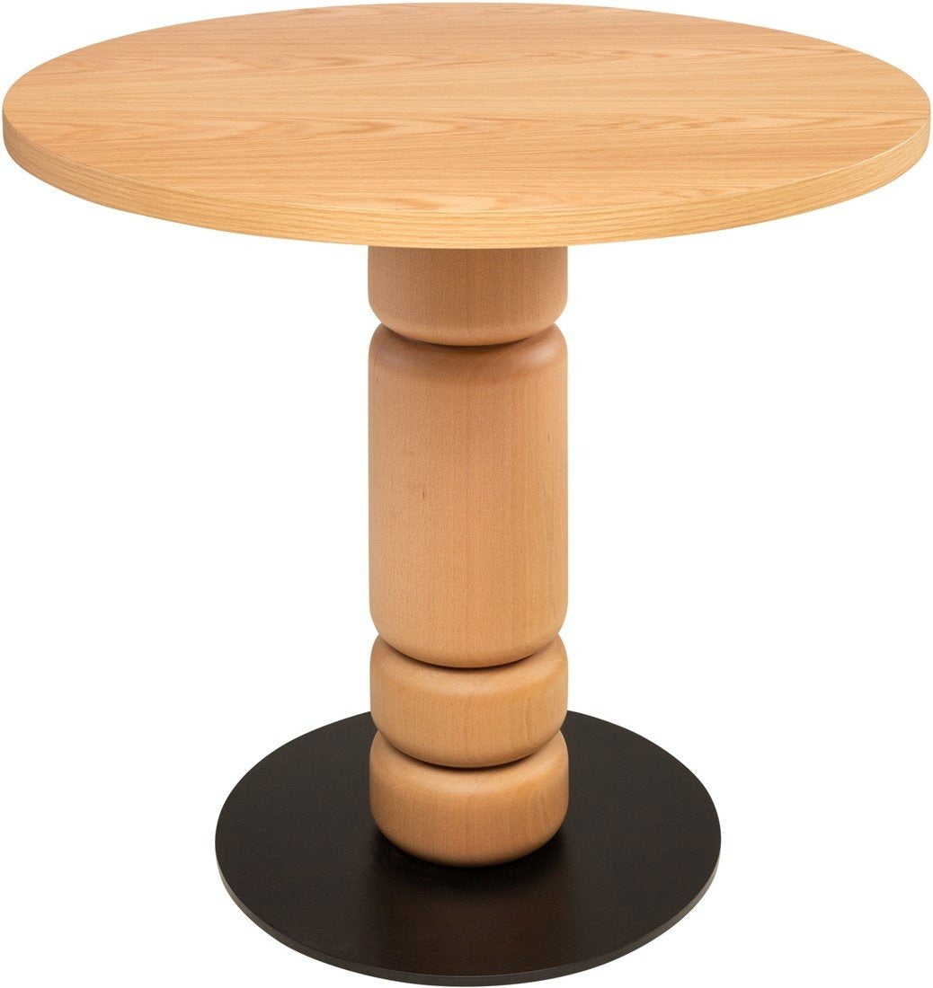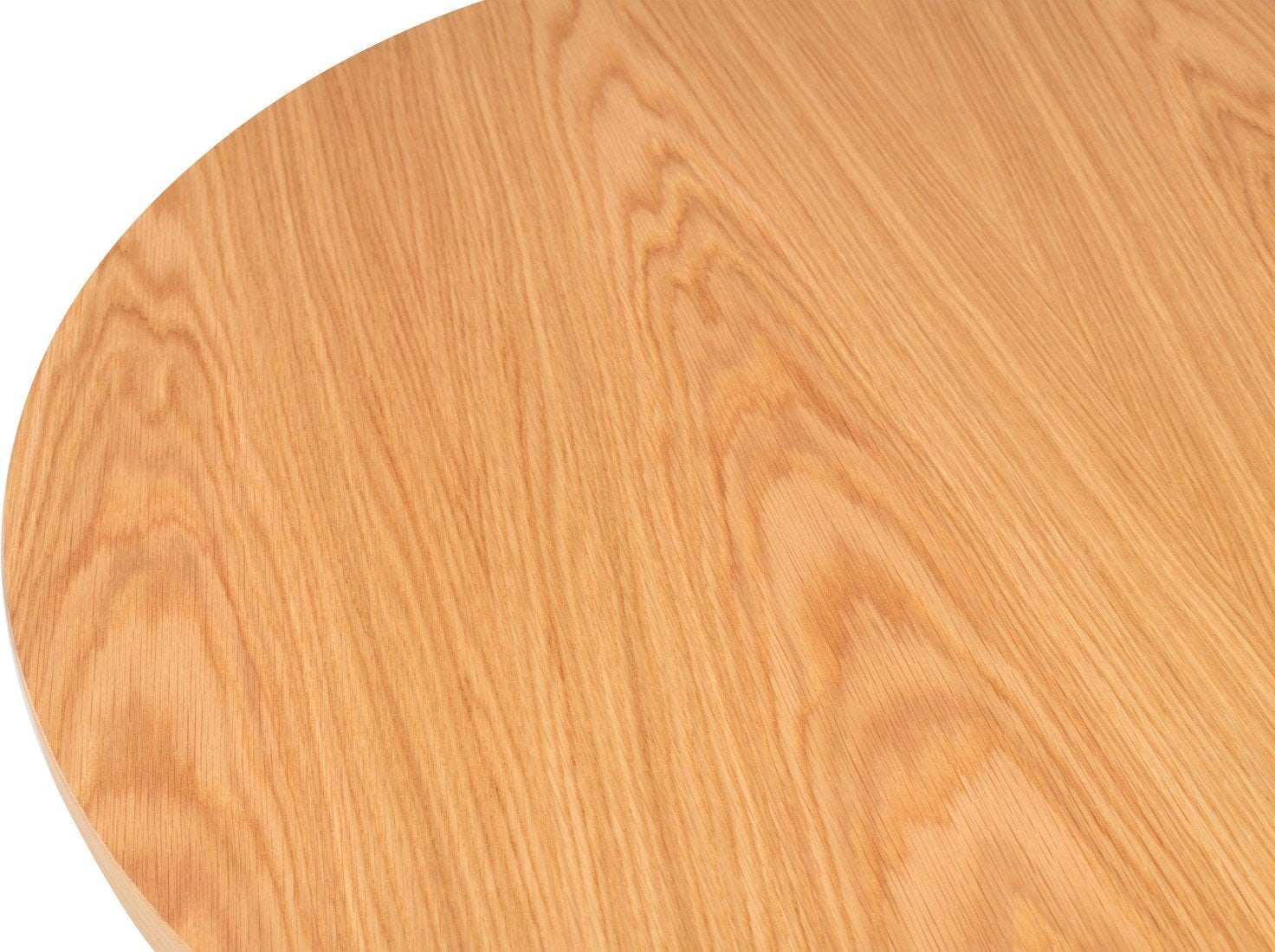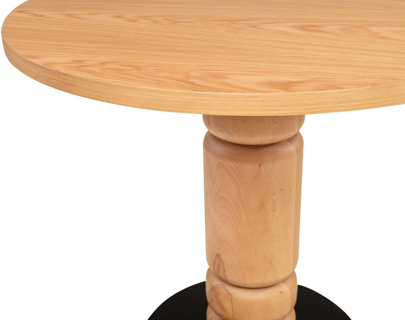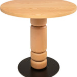 Crafted with a sturdy black steel and natural beech wood base, its sculptural design offers a striking contrast to the sleek oak veneer top. This compact yet stylish table is ideal for apartments or combined kitchen-dining areas, providing a modern, space-saving solution without sacrificing aesthetic appeal.