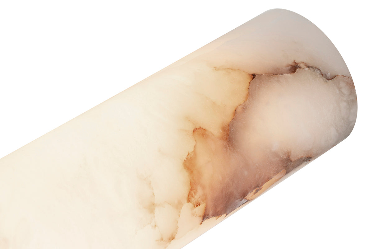 With a stunning alabaster diffuser at the forefront of its design, it casts a warm, ambient light that will enrich your space in an instant. A sleek, gleaming band of aged brass metal accentuates its elegant design and adds a touch of luxury.