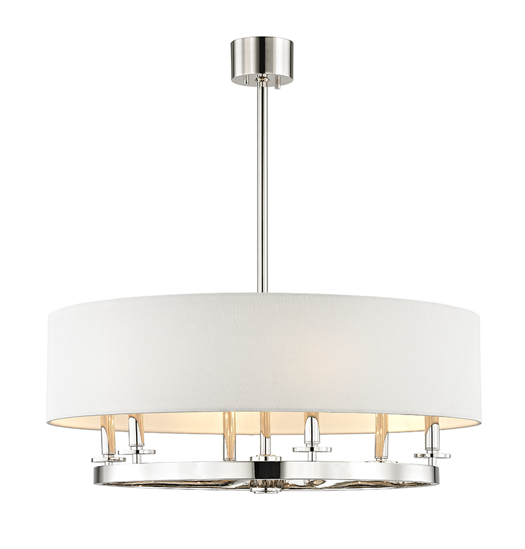 The polished steel of the Hudson Valley Lighting Durham Island Light catches your eye first in its sleek frame. It is so unique in its shaping and lovely bright finish. The wide brimmed shade is made from eggshell white linen, and both work together in harmony. Use this for the space you entertain in, as its lovely appearance will boost your interior setting. This is so clean and crisp it makes a pristine finish to modern or minimalist spaces. For your dining room or as part of the lighting for a large open space, it is perfect. Equally attractive in an office or your home, it is adaptable as well as chic.