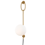 The Hudson Valley Lighting Gina Wall Sconce offers something new for your space. Unlike most sconces, you can place this anywhere you like and power it with a simple plug (included). Simply move it around your home and use it where light is most in need. From the coffee table to a crafting table, or just a room with darker corners. Easy, flexible light is what a room needs at times. The bulb is encased in an etched opal globe which looks so warming and delightful. Take this punchy light exactly where you need it, with easy and convenient fitting. It also makes a fabulous lighting solution for rental properties