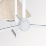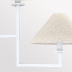 The chandelier’s sleek, textured white arms support a series of soft Belgium linen shades, offering a warm, ambient glow that beautifully illuminates your space. Its minimalist design exudes sophistication while maintaining a bold presence, making it a striking focal point in any room.