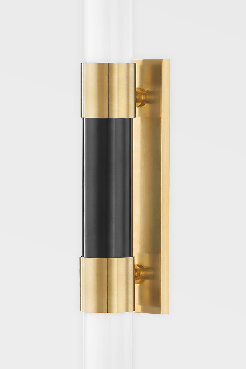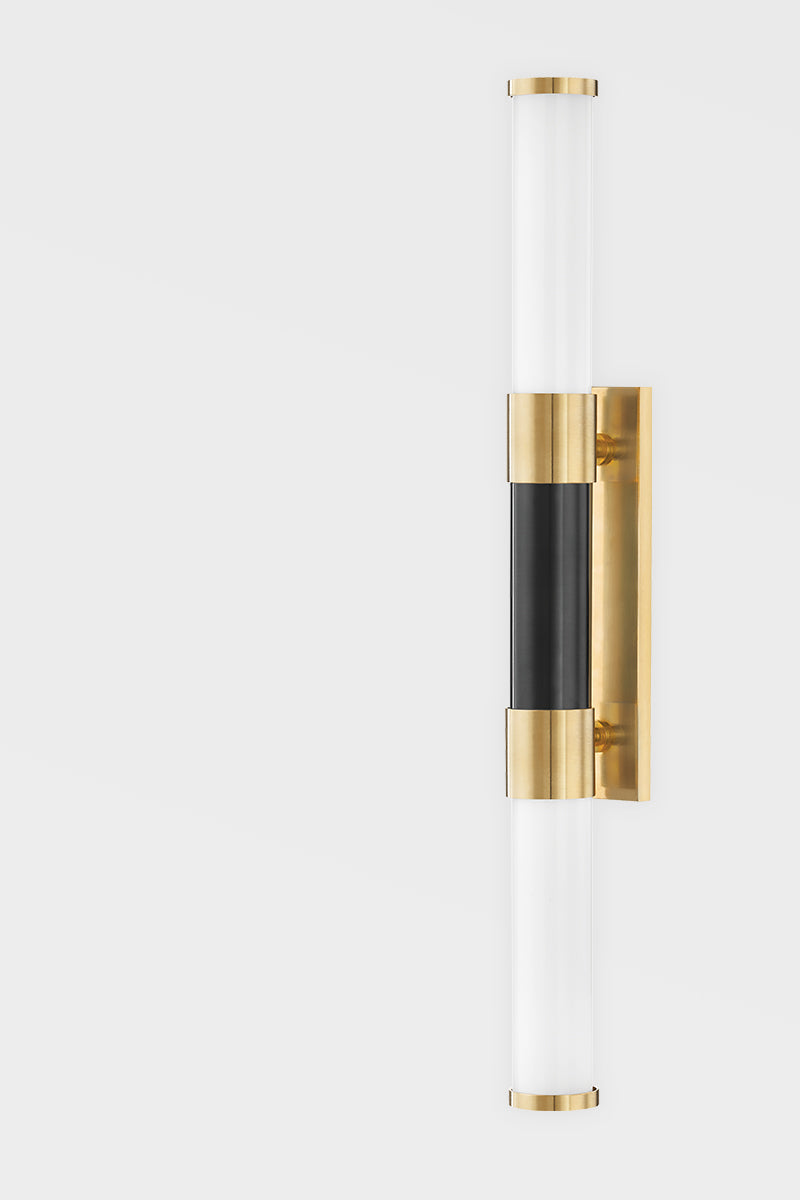 This linear lighting marvel is designed to impress, featuring a sleek fixture in aged old bronze and black that perfectly cradles smooth milk-glass tubes. Gleaming caps on either end add a finishing touch that emanates luxury. When lit, the sconce radiates a warm, cosy ambience, enveloping your space in a serene glow that speaks volumes of its quality.