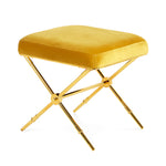 Featuring a luxurious Rialto Gold velvet seat, it offers a plush, tactile experience, while the striking X-shaped frame, with a polished brass finish, exudes sleek sophistication. A perfect blend of vintage glamour and modern flair, this versatile piece adds a touch of chic to bedrooms, living rooms, or hallways.