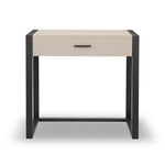 This charming bedside table stands proud on a sturdy metal frame with an elegant matte black finish. The outside of the table boasts a beautiful mink-coloured faux leather overlay for a classy aesthetic. A substantial drawer provides space for your essentials whilst the top is perfect for a lamp or alarm clock.
