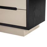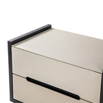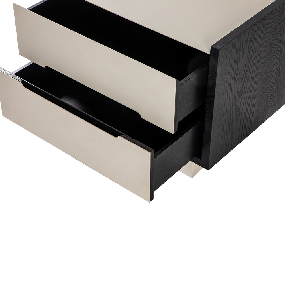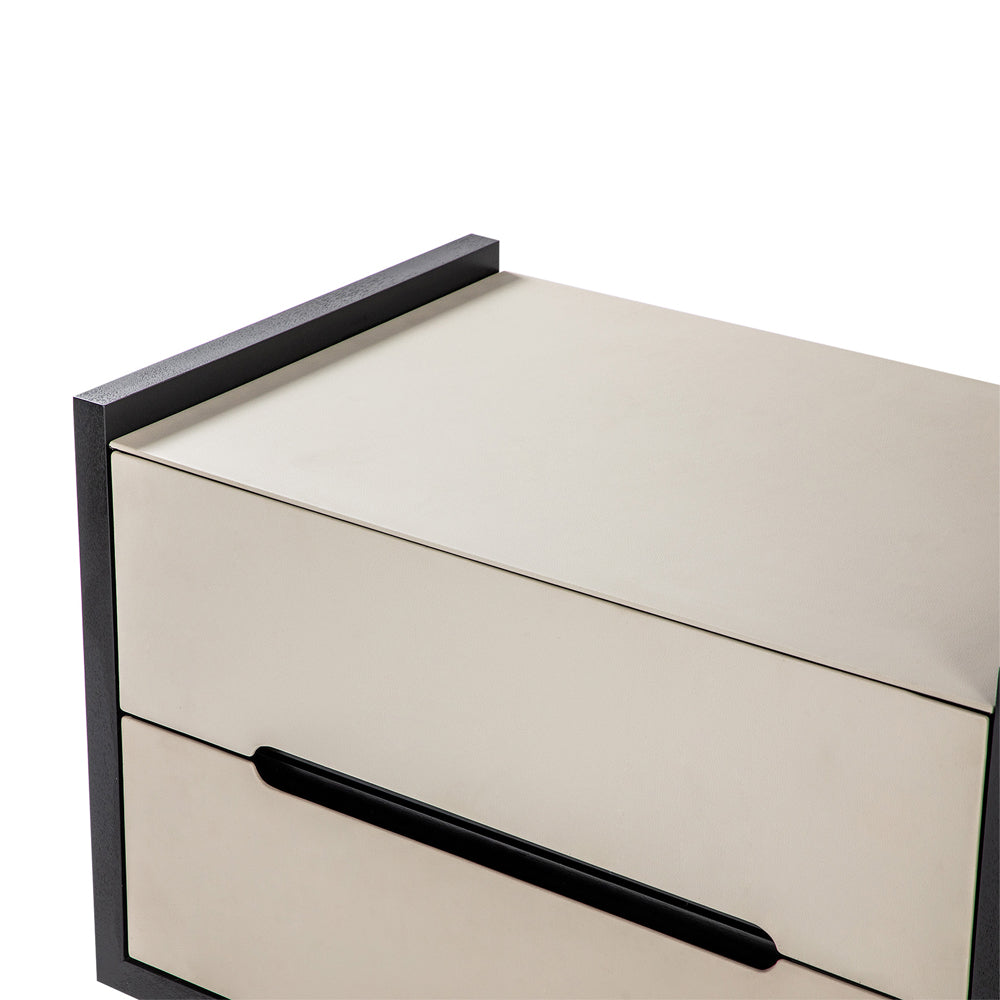 Breathe new life into your bedroom with the luxurious range of Antara furniture from Liang & Eimil. Sitting on a chunky square base, this angular unit boasts subtle style with its grey vegan leather and U-shaped surround made of black-stained ash veneer. It features two drawers, perfect for stashing away your essentials and nightly bedtime reading. It looks great by itself but brings a sense of symmetry when introduced as part of a pair to frame your bed. The Antara Bedside Table is well suited to a wide range of design schemes but will truly shine in a contemporary interior. Why not complete the look with the matching Chest of Drawers?