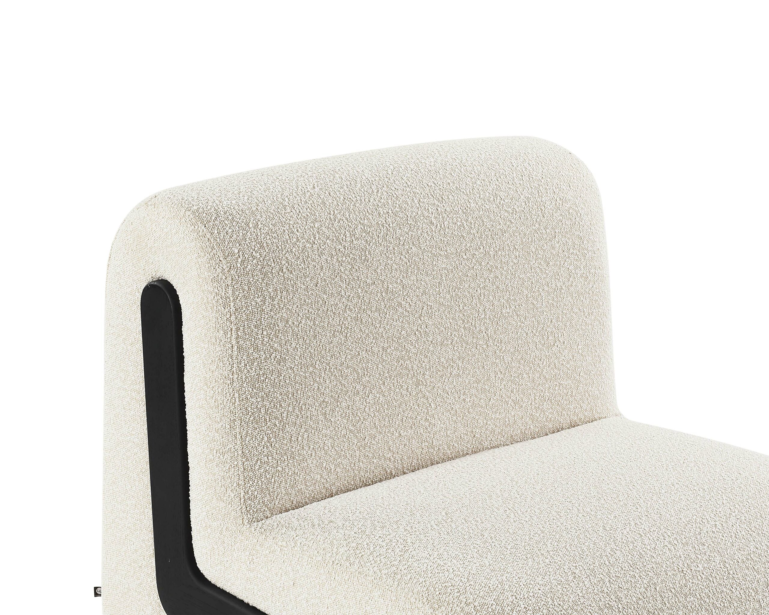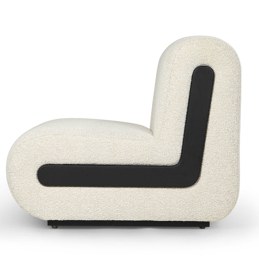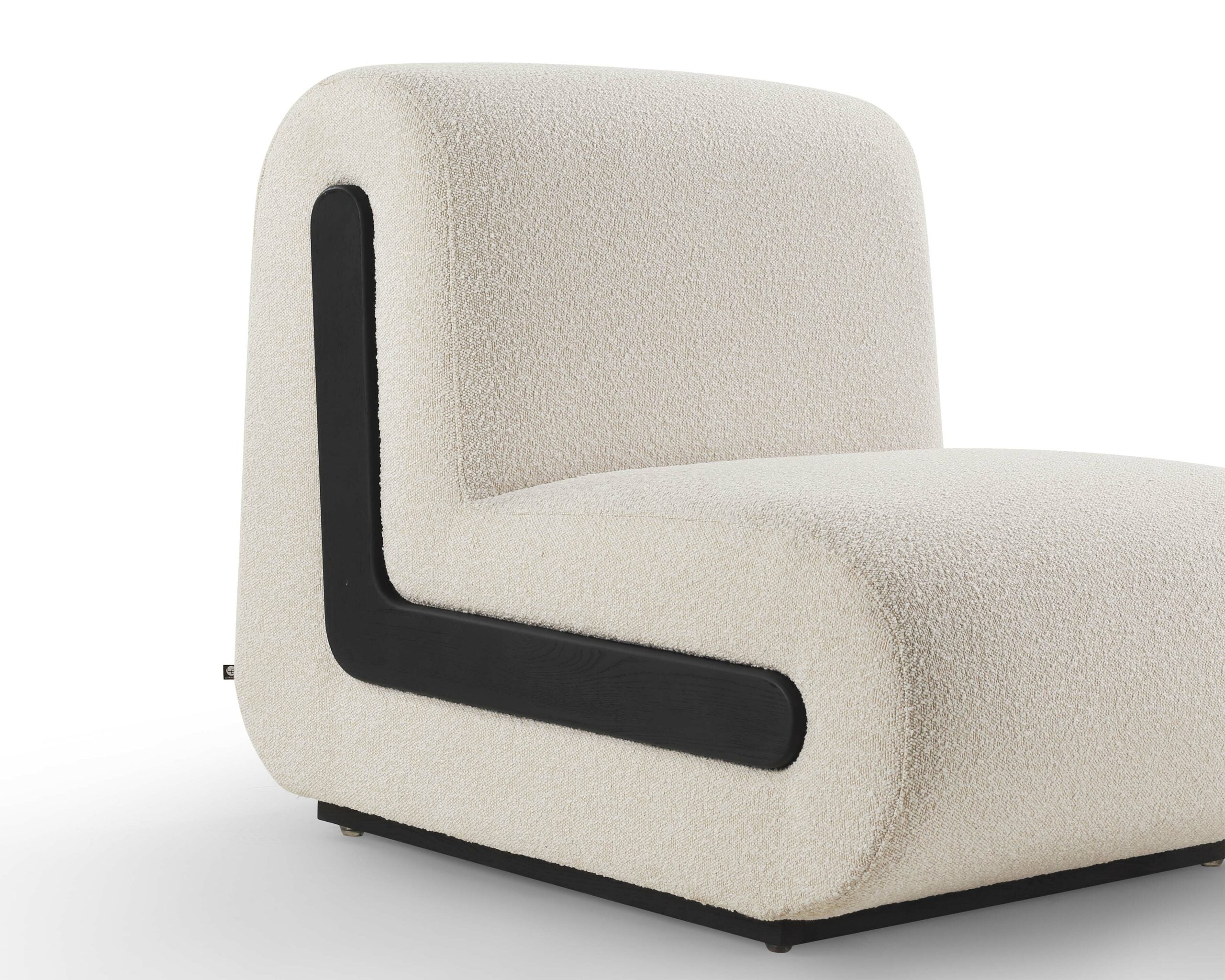 With its warm, sandy bouclé upholstery, this plush and padded seat delivers an unparalleled seating experience. Its sleek, L-shaped silhouette and minimalist design, accentuated by striking black wooden elements, effortlessly epitomise contemporary elegance. Designed with versatility at its core, the Bola functions beautifully as a standalone accent piece or, in multiples, to form a stylish sofa set.