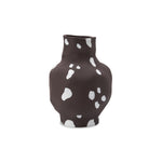 Boasting an organic, uneven shape that adds distinctive character, this vase is crafted in earthy brown ceramic, adorned with splotches of white throughout. Its dynamic interplay of colours and textures transforms any space into a canvas of rustic beauty.