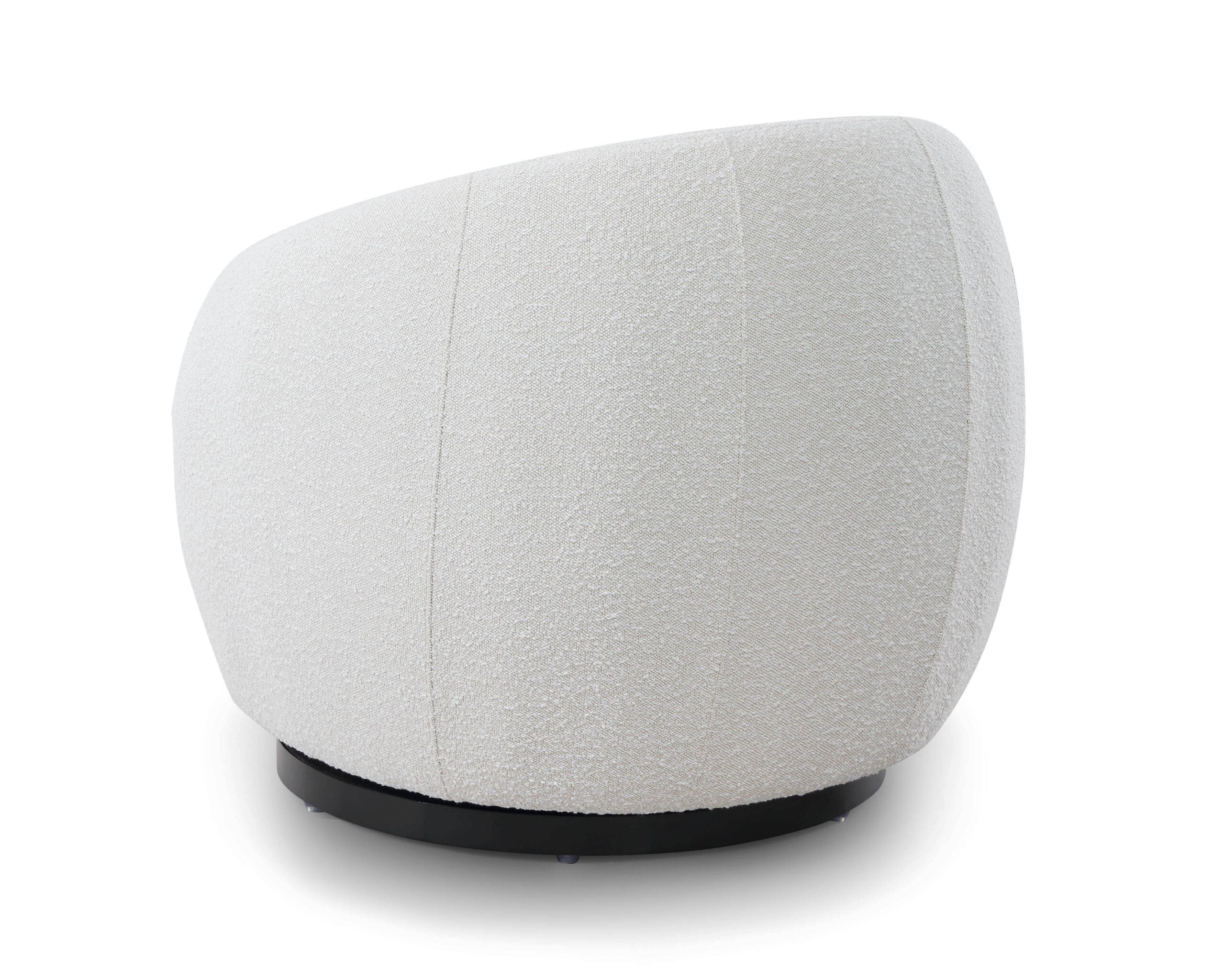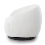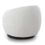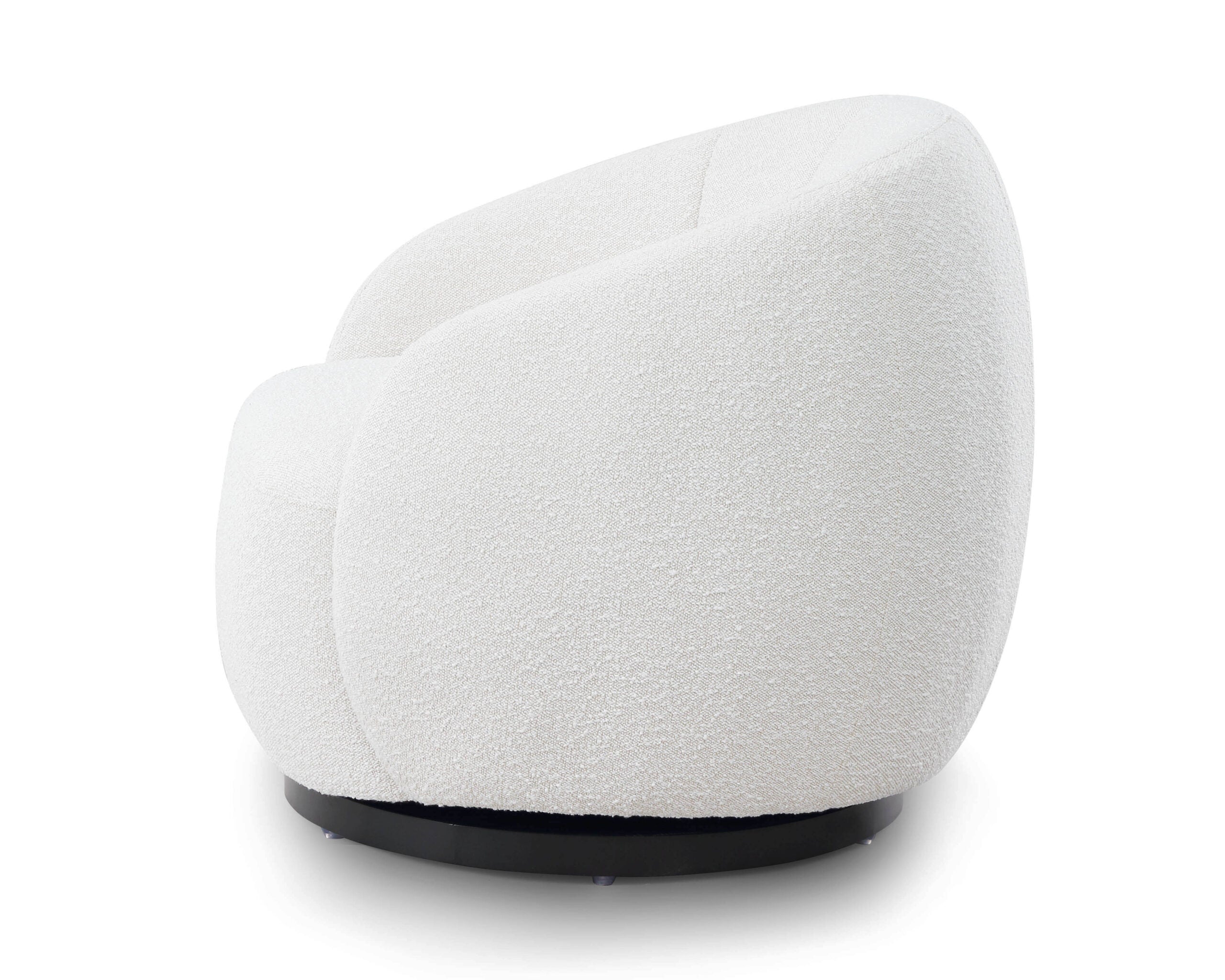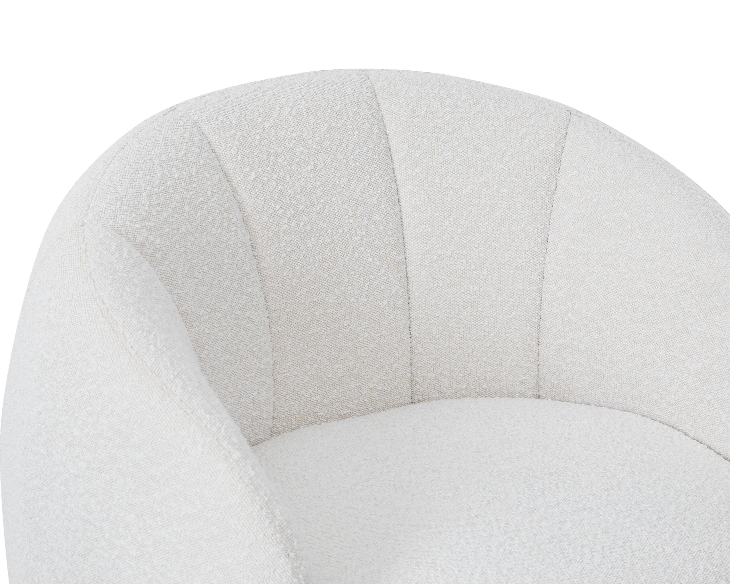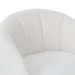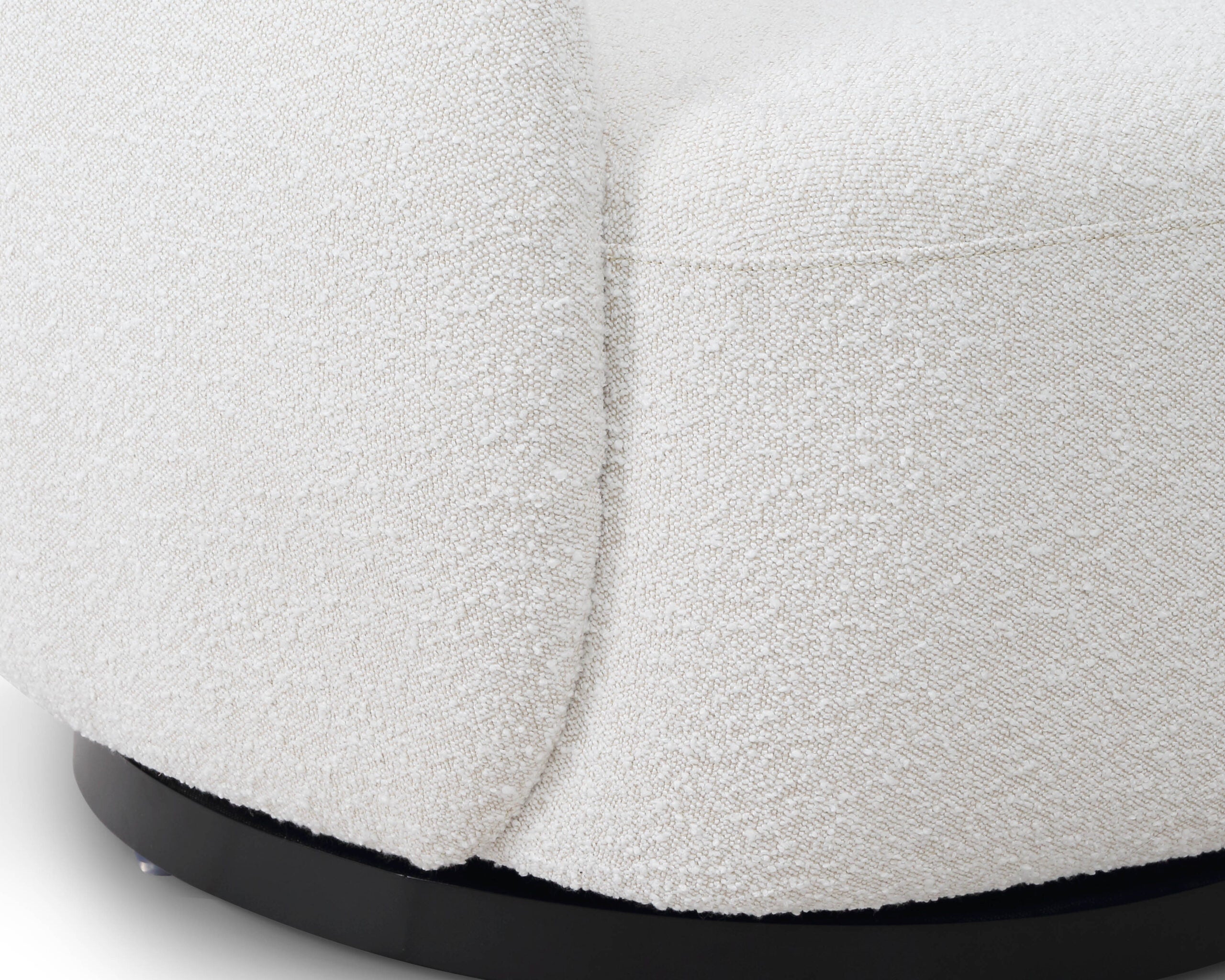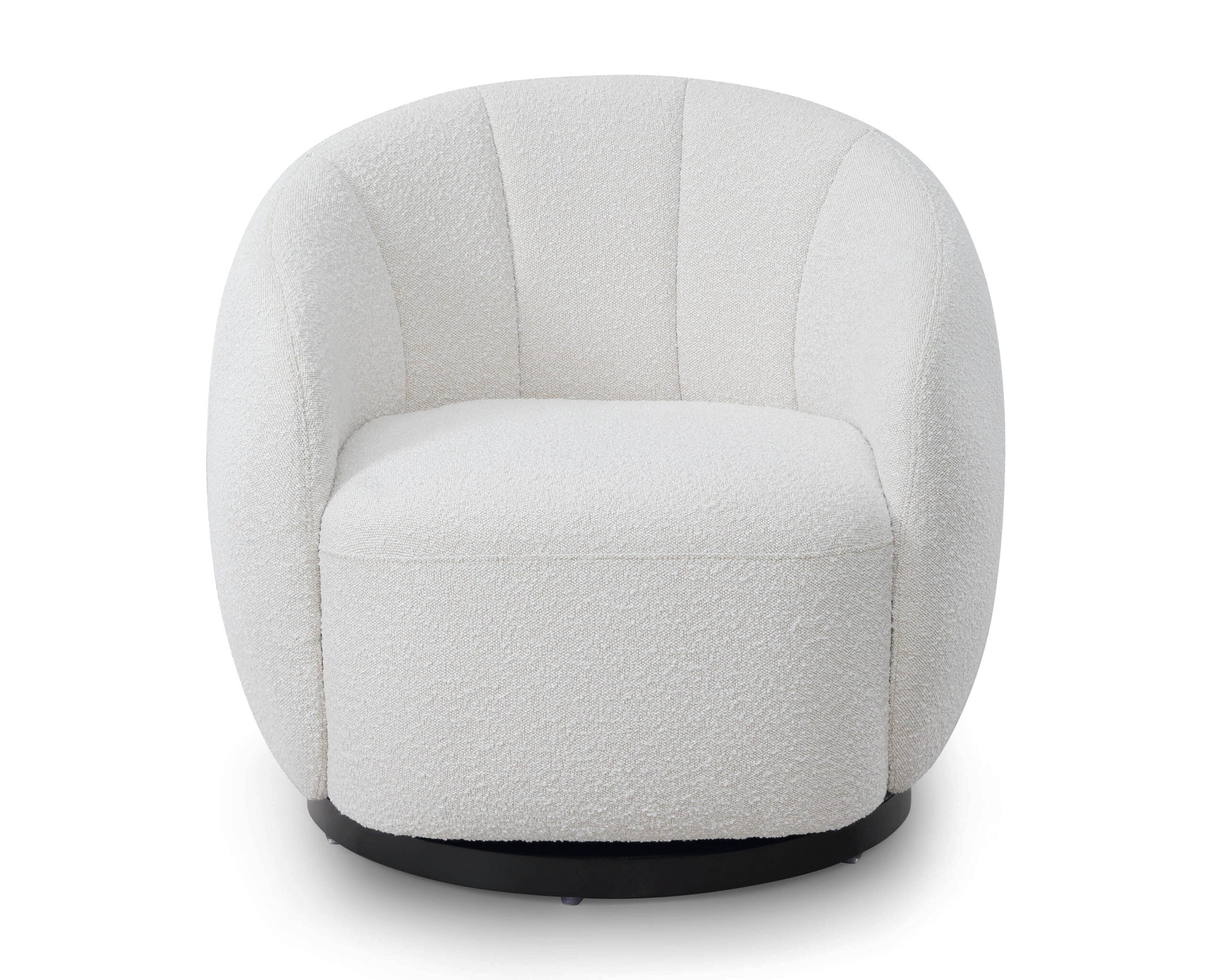 A luxurious barrel back curves to hug your frame for enhanced comfort whilst its soft, sandy upholstery is treated to deep stitching for flared channel detailing. Its sleek, black base conceals a swivel mechanism, allowing for 360-degree rotation for heightened appeal, versatility, and convenience.
