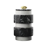 Crafted from alternating black and white marble, this jar boasts a crisp and clean aesthetic with pleasing symmetry that instantly catches the eye. Its standout feature is the gleaming lip-shaped handle, which has been given an opulent gold finish to add a touch of luxury and charm. Serving as a stylish solution for organising wrapped sweets, miscellaneous items, or even as a decorative accent piece, it offers endless utility.