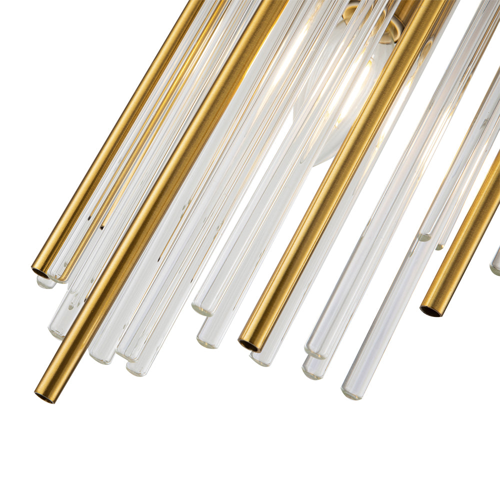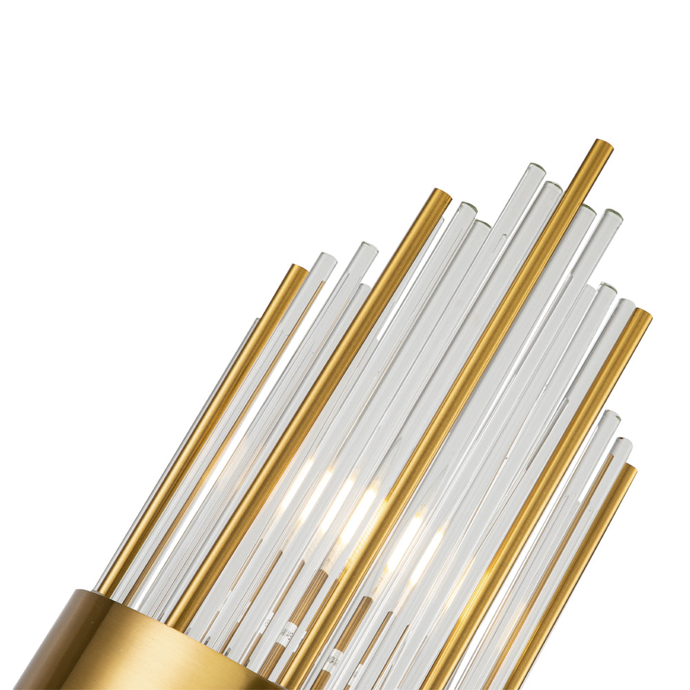 An imaginative take on Deco-inspired design, the Clarins Wall Lamp creates a vision of loveliness in your room of choice. Featuring narrow tubes of brushed brass metal and clear glass, this is the epitome of elegant lighting. Its striking design will revitalise any space as its bright, warm light extends throughout. A showstopper in any design scheme, this lovely wall light brings a sophisticated edge that is sure to impress. Whether you seek to inject subtle class or make a statement, the Clarins Wall Lamp is a stunning choice for your space.