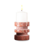 Crafted from rich red travertine, its unique stepped design adds depth and architectural appeal. The natural texture and earthy tones of the stone create a striking contrast against a glowing candle, making it a perfect accent for dining tables, consoles, or bedside decor.