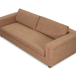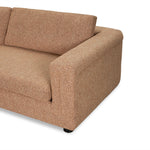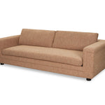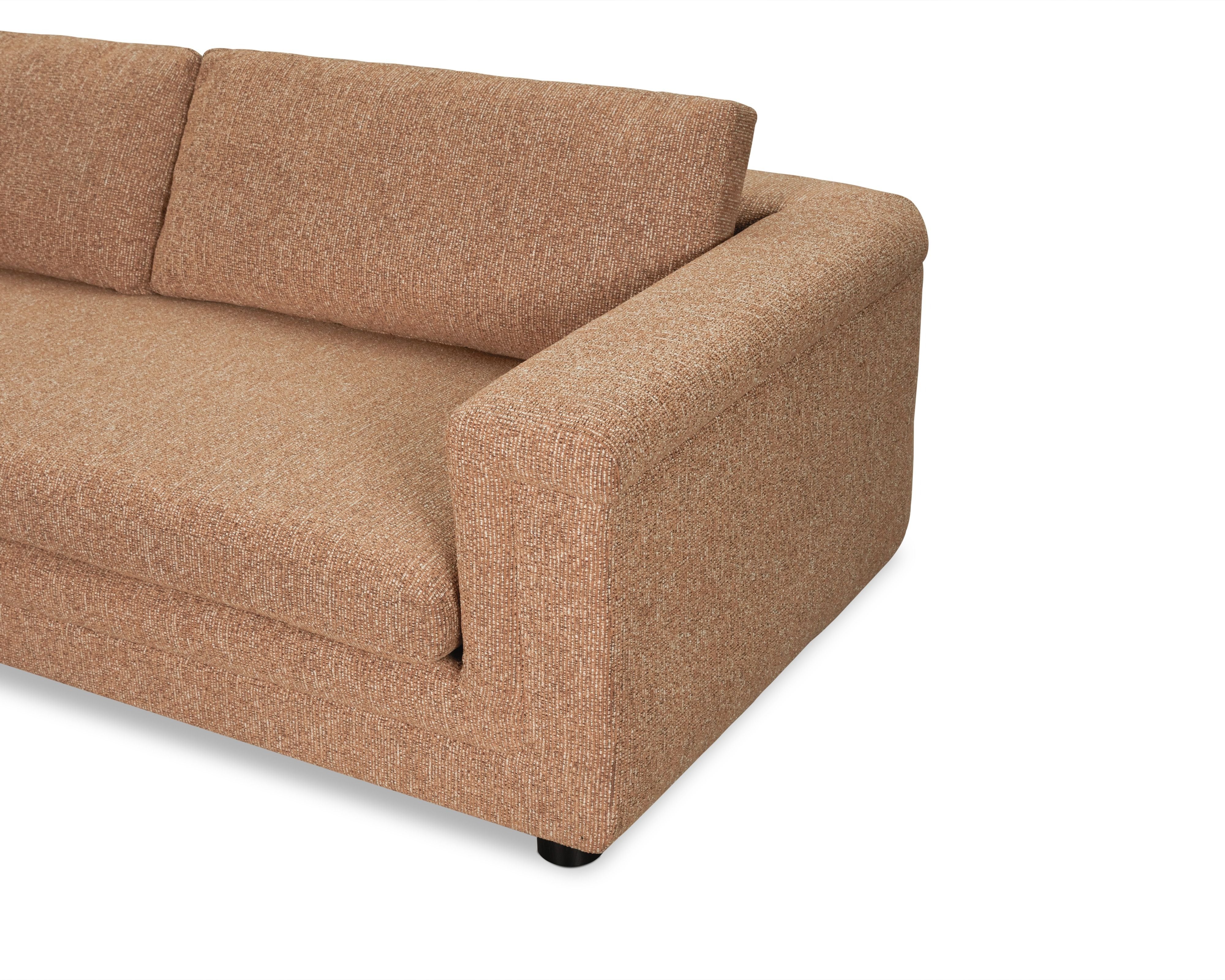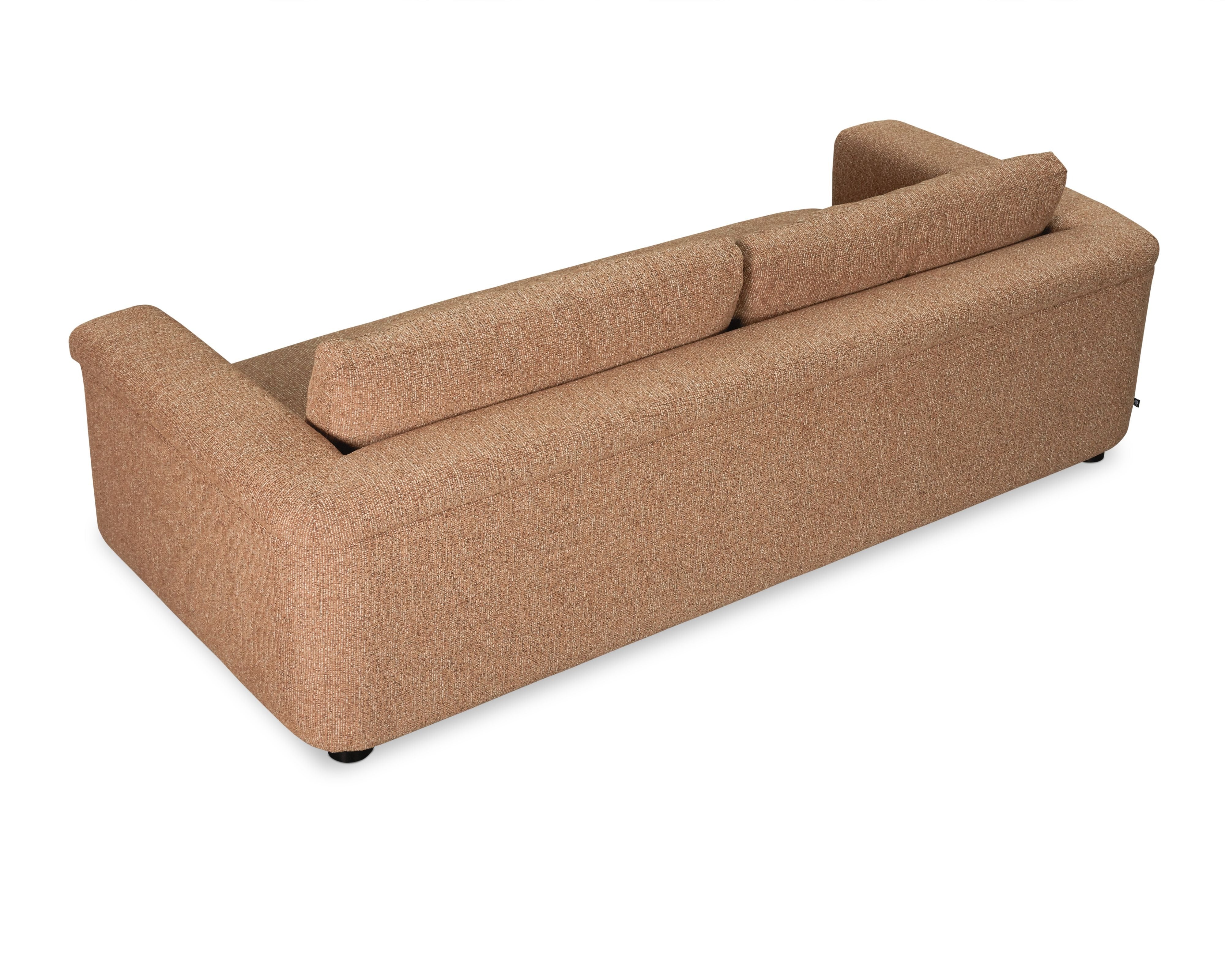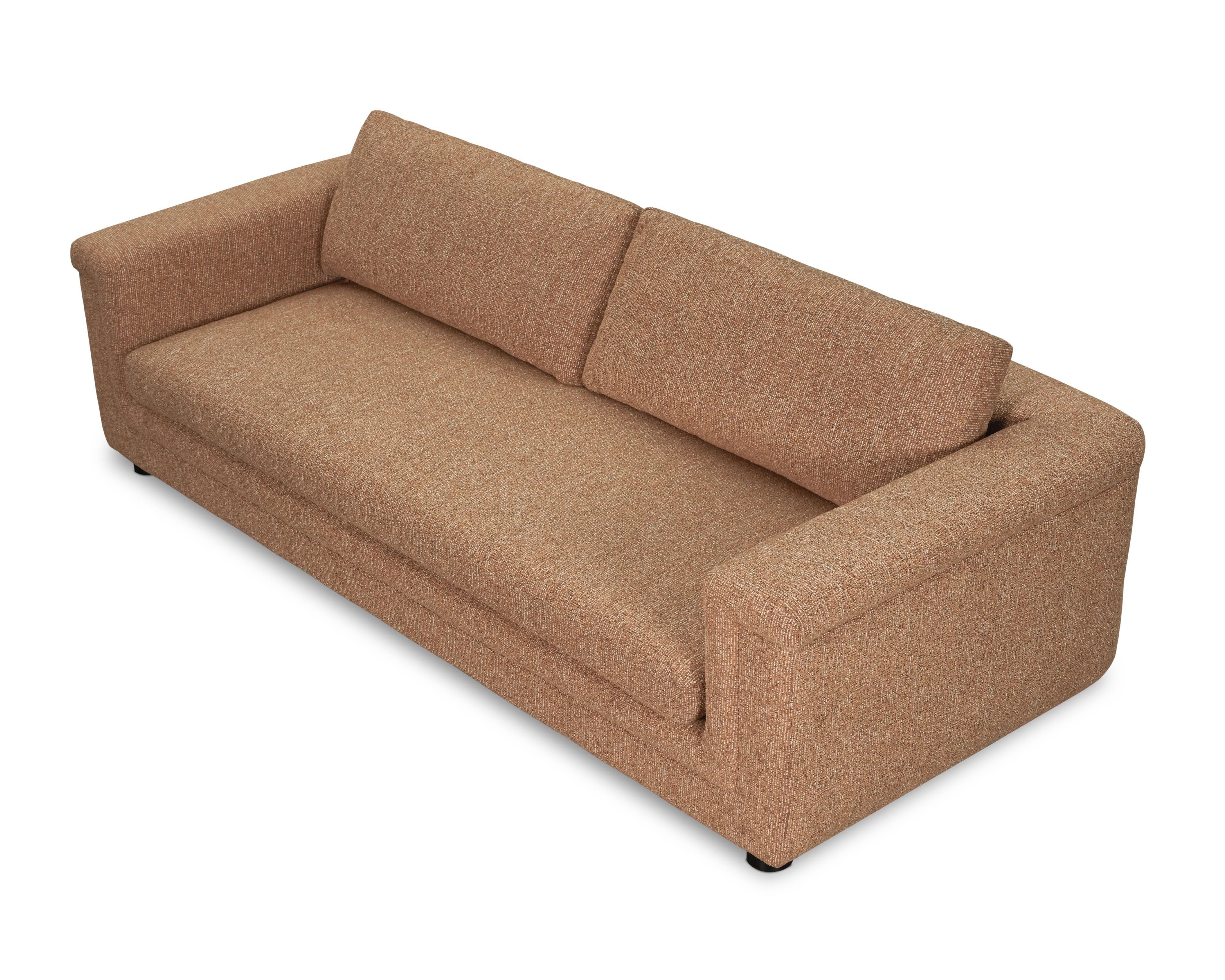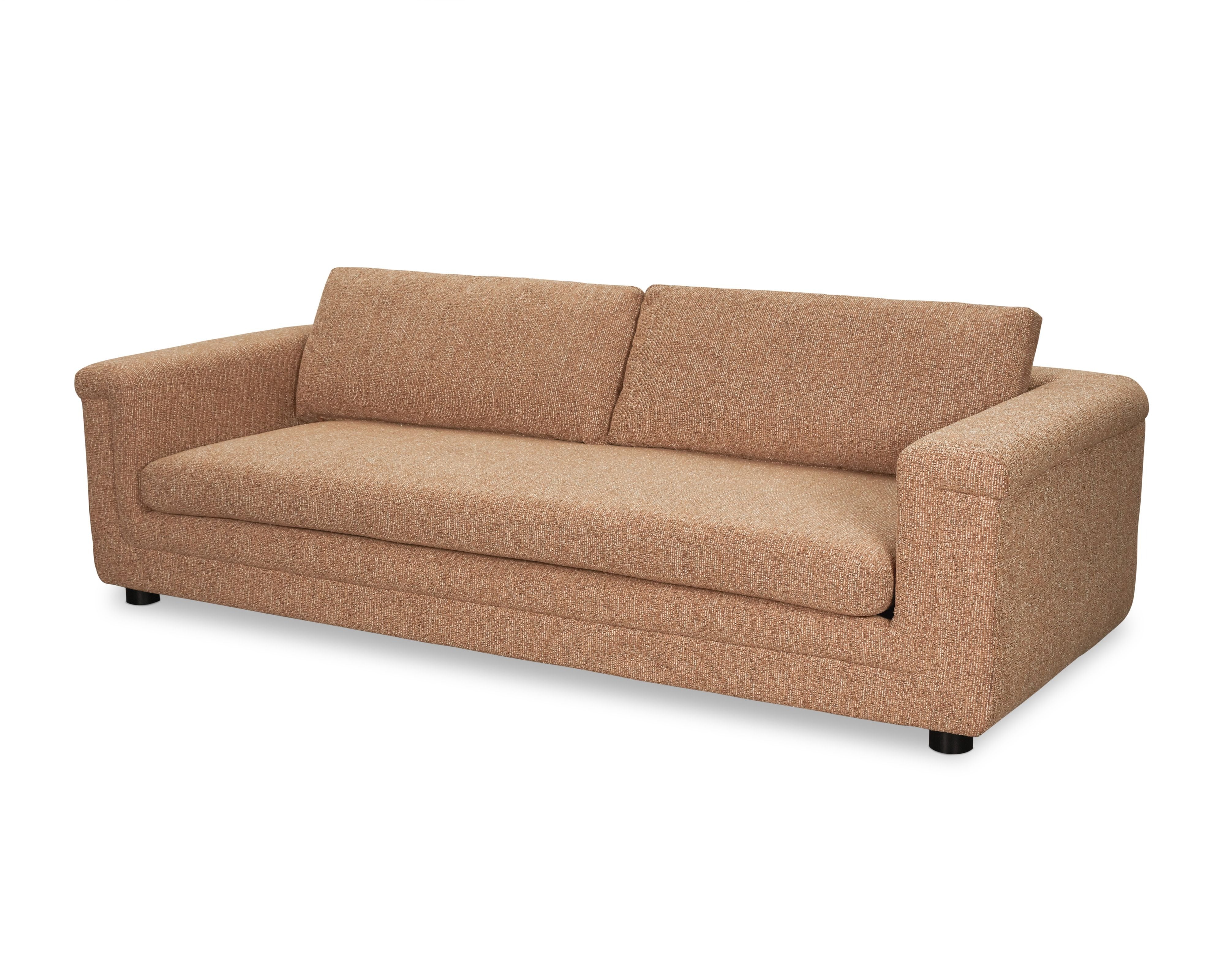 Its boxy shape is softened by generously padded cushions and wide arms, offering a structured yet relaxed look. Upholstered in richly textured Bari Amber fabric, it brings a sense of warmth and depth to any modern interior, commanding attention without overwhelming the space.