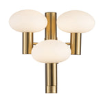 Three brass-finished arms protrude from the central metal cylinder, each one supporting a globular shade of white glass. This subtle contrast boasts opulence without overpowering your interior.