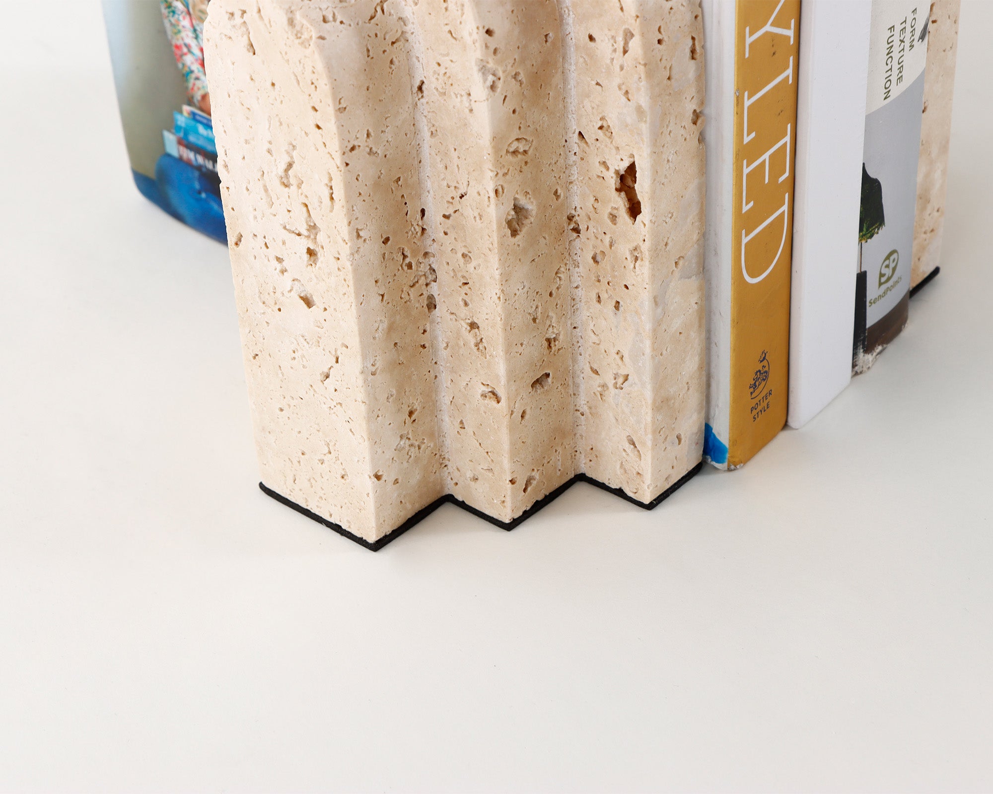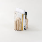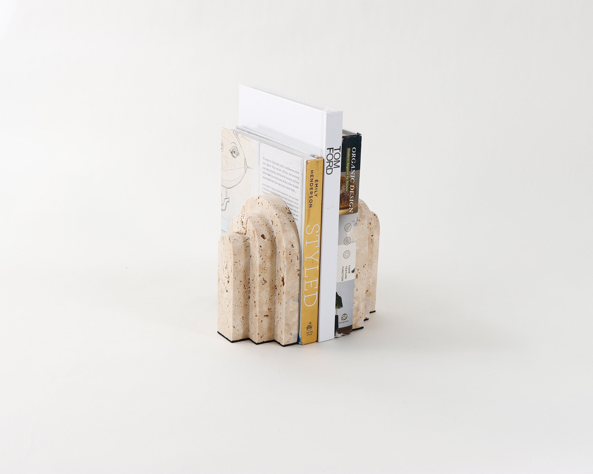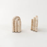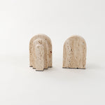 Masterfully crafted from exquisite beige travertine, these bookends exude sophistication and with a nod to architectural practices, their geometric design and striking stepped arch shape create a dramatic visual statement. More than just functional, they serve as a piece of art, adding a touch of elegance and luxury to your space.