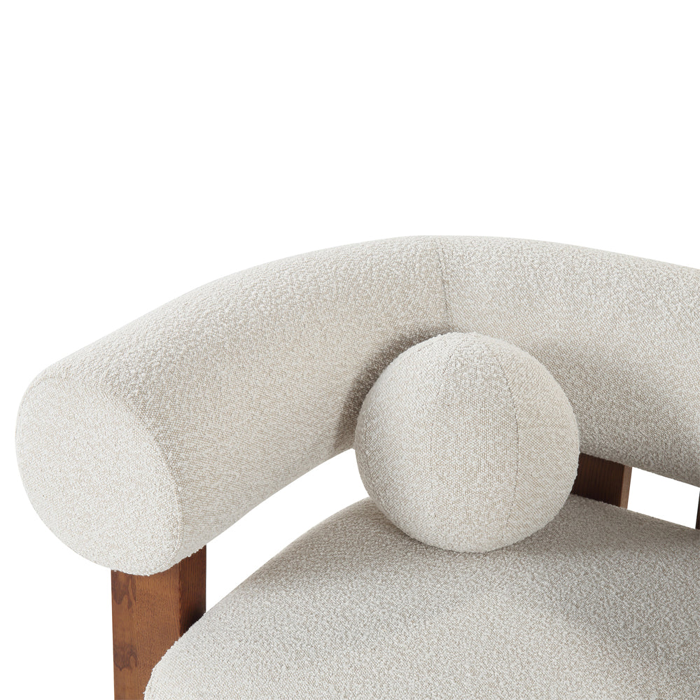 Impressing with its sleek, geometric form, the Epic Occasional Chair from Liang & Eimil makes a stunning addition to contemporary or deco spaces. It features a lavishly padded seat and a curved backrest for a comfortable and supportive sitting experience, accentuated by the soft boucle fabric. Sleek, angular legs made from solid ash wood support the piece, finished in classic brown for an unfussy design that allows the natural grain of the wood to shine through whilst a spherical cushion completes the look with a playful edge. Exuding elegance in your living room or bedroom, the Epic Occasional Chair makes a bold statement.
