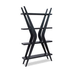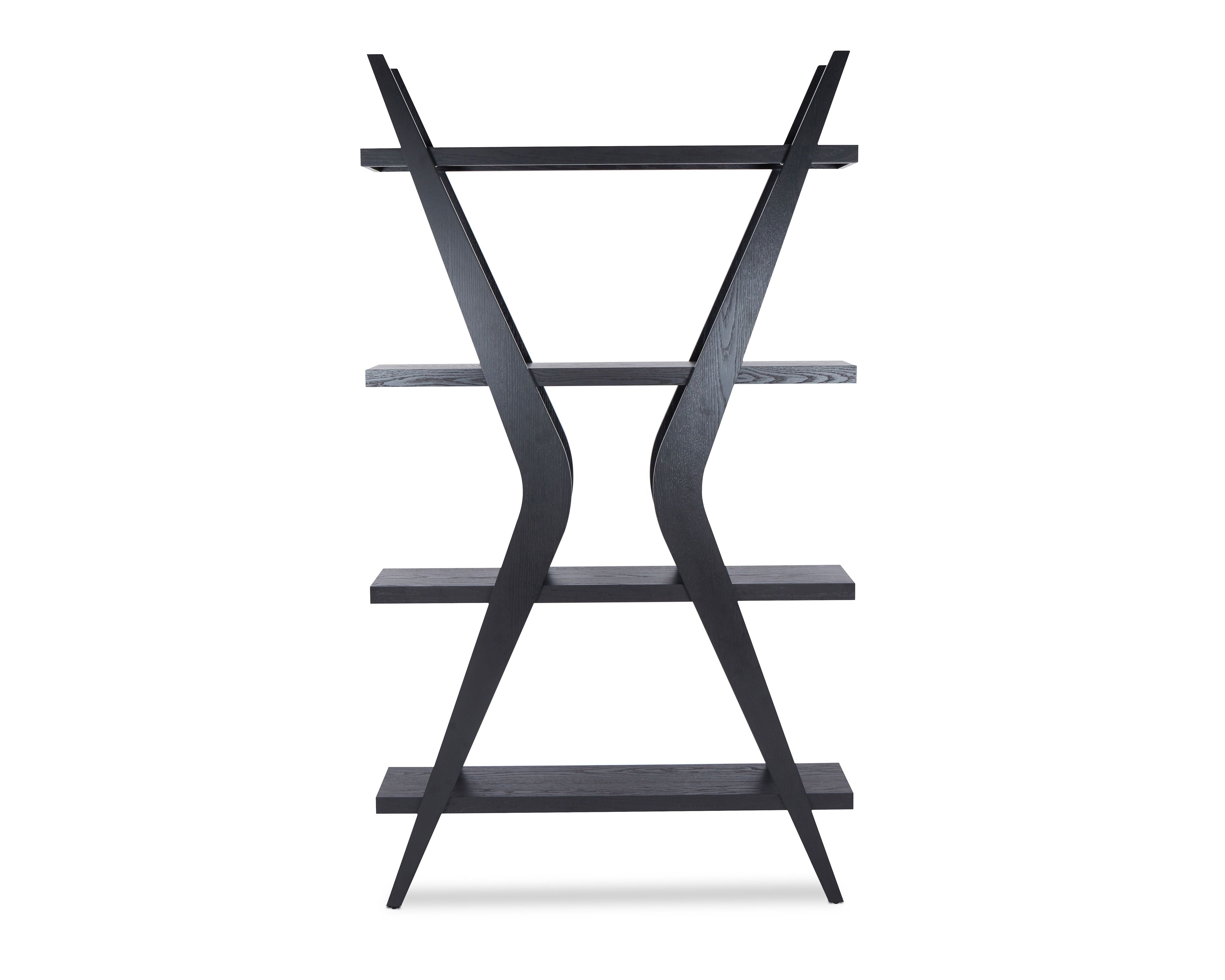 Crafted from dark wenge ash wood, its distinctive symmetrical frame offers a perfect blend of form and function. The dynamic V-shaped design creates visual intrigue while providing ample storage across four spacious shelves. Ideal for displaying books, art pieces, or decorative objects, this shelving unit adds architectural flair to both modern and contemporary spaces.