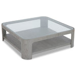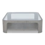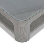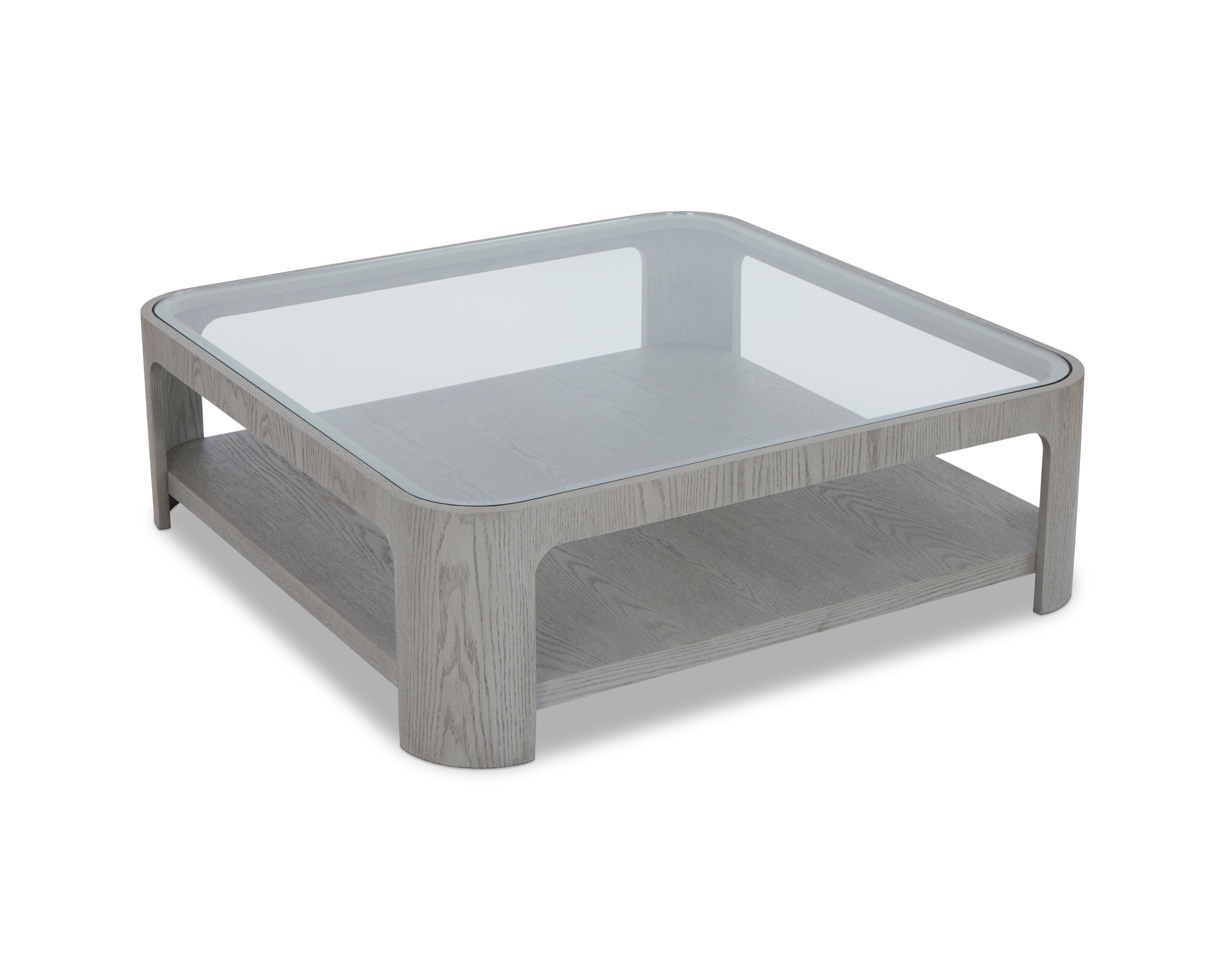 Crafted from brushed silver black ash, its sleek silhouette boasts rounded edges for a look that is both contemporary and timeless. The clear glass top brings a light, airy feel, while showcasing the beautiful wood grain beneath. A practical lower shelf offers additional space for books, décor or everyday essentials, ensuring it is as functional as it is stylish.