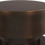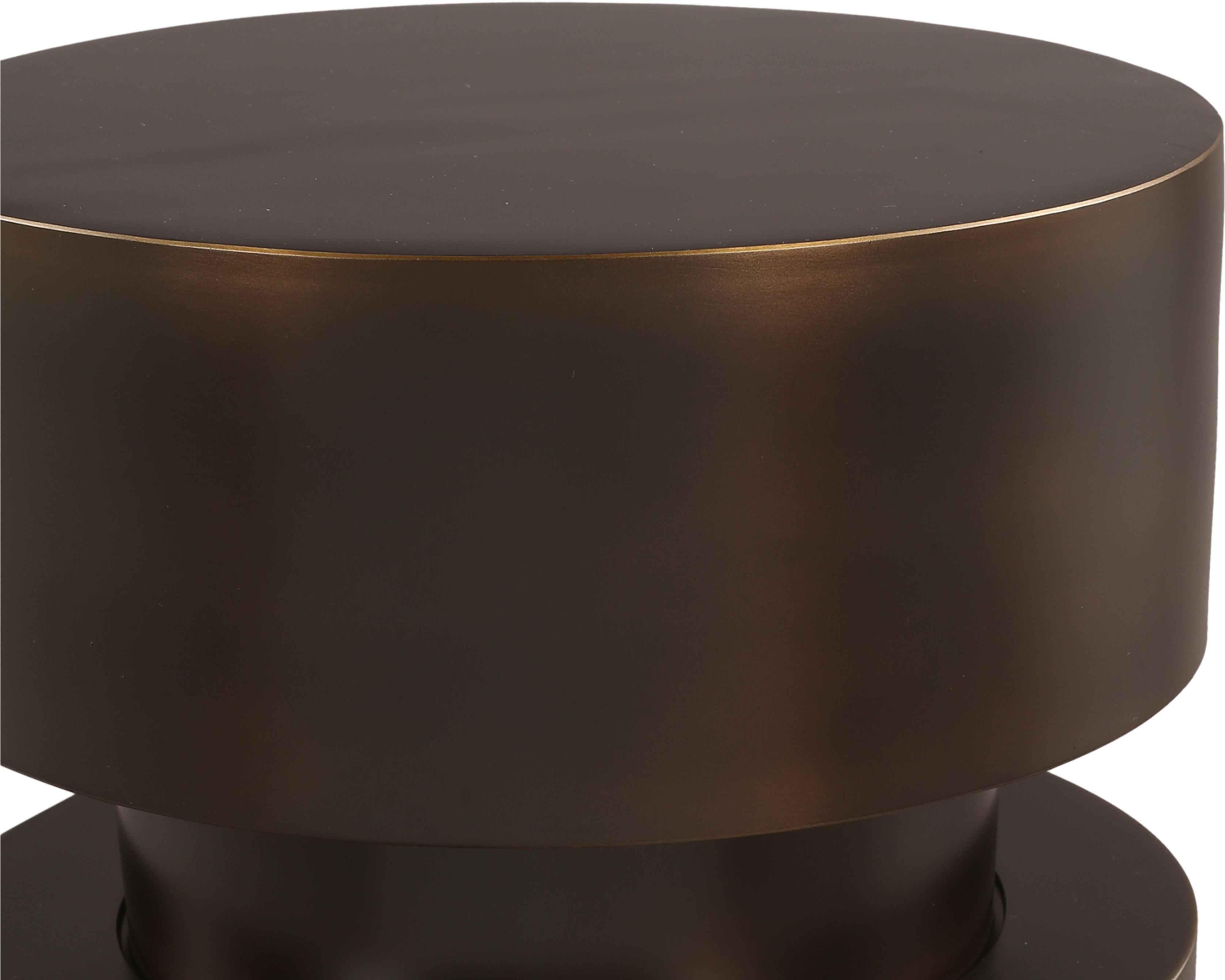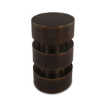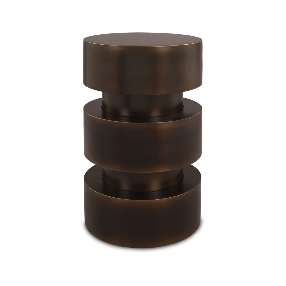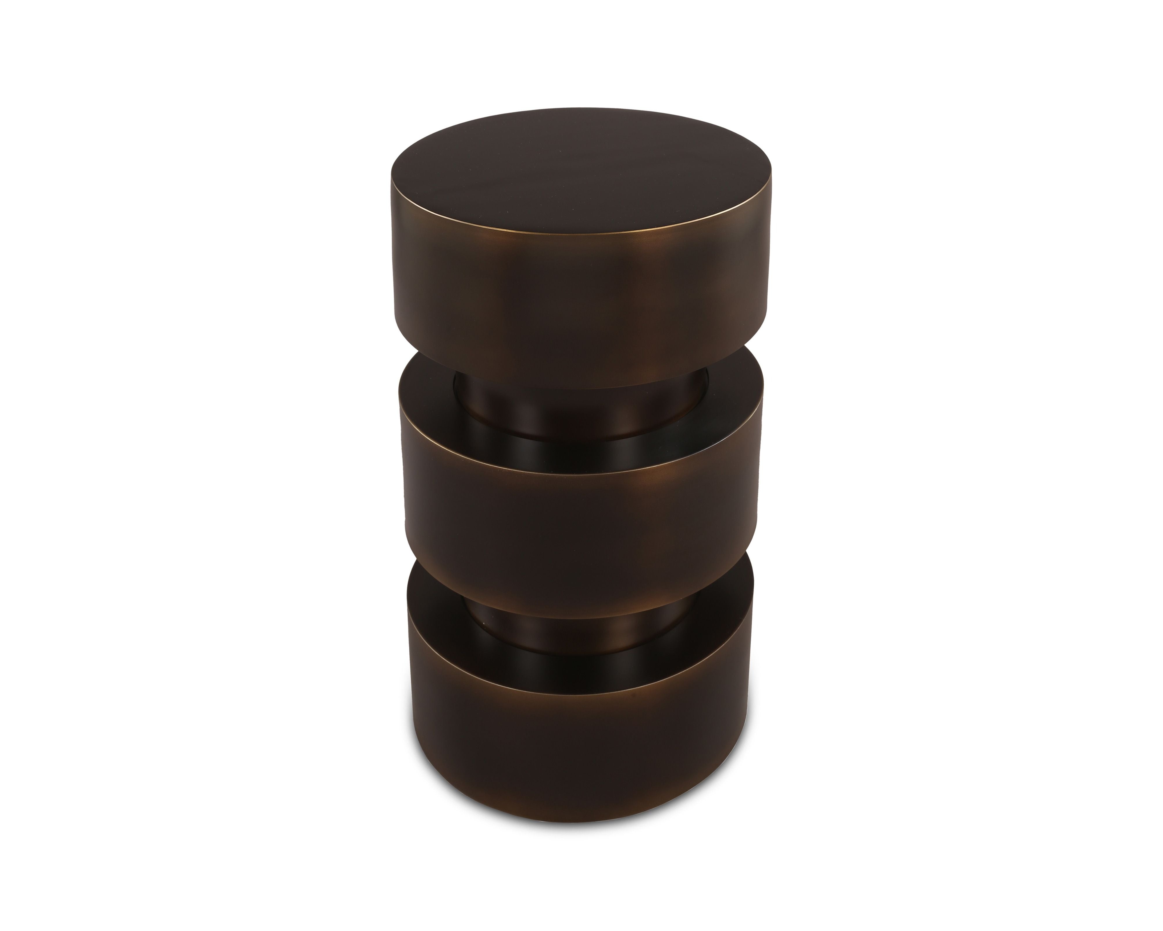 Crafted from metal with a luxurious dark bronze finish, this striking piece features a tiered cylindrical form, creating a strong sense of symmetry and depth. Its sleek, rounded silhouette and weighty presence make it a functional work of art, perfect as a side table, accent piece, or modern pedestal.