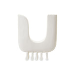 Hand crafted from white ceramic, it showcases an almost U-shaped form that captivates the viewer with its fluid curves. Its multiple petite legs add depth to its silhouette, creating a look that resembles a traditional Viking boat.