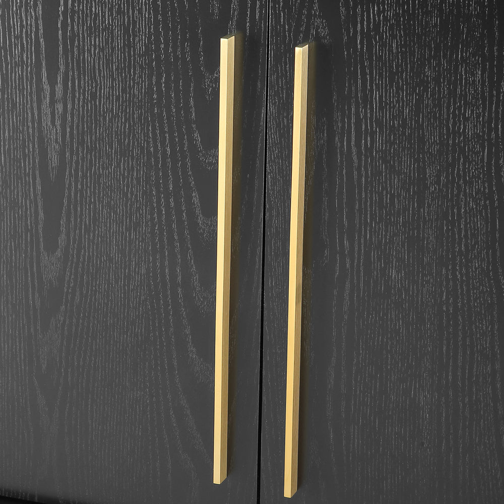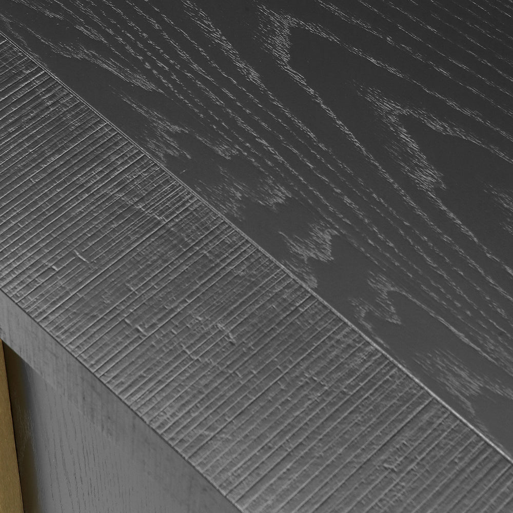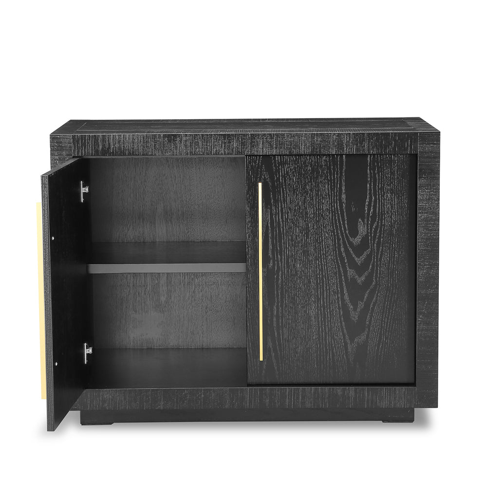 Crafted from black oak veneer, the Kent Sideboard is reassuringly sturdy, though its recessed base adds an air of elegance. Two doors and inside shelving provide plenty of storage to keep your space free of clutter, whilst the top of the sideboard is perfect for displaying your ornaments. A pair of brass finished handles complete the look with a striking contrast.
