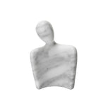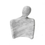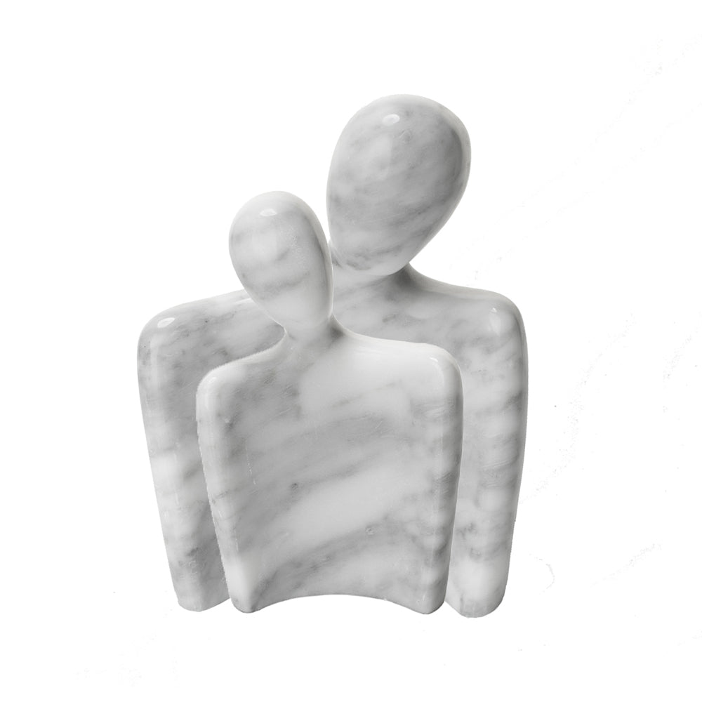 Smooth white marble has been carefully crafted into the silhouette of two featureless figures for this exquisite, abstract design. Deep, grey veins run through the marble for a beautiful, variegated aesthetic.