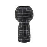 Expertly handcrafted from textured ceramic, this unique piece features a gracefully slim base broadening into a rounded top, perfectly suited for medium-sized floral arrangements. Its black ceramic canvas is thoughtfully contrasted with intricate white linear detailing to create a striking image. This stunning interplay of tones adds layers of depth, transforming simplicity into intrigue.