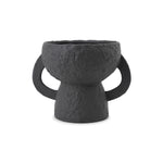 Shaped akin to a revered trophy, it boasts dual handles that enhance its symmetrical allure. The rustic texture running across its jet-black façade provides a tactile depth, marrying modern aesthetics with an earthy charm. This piece is impressive not just as a standalone, but shines in companionship with the matching Namito Bowl. Together, they create a compelling duo, brimming with sophistication and visual harmony.