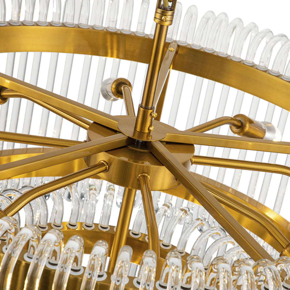 Enrich your space with the exceptional beauty of the Mist Tall Pendant Lamp from Liang & Eimil. Its charm begins with the immensely classy, spoked frame with its brushed brass finish, and extends to two tiers of delicate loops of clear glass. The result is one of pure elegance as this lamp hangs above your space and fills it with radiant light.