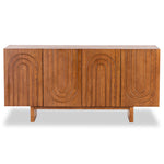 Radiating rugged charm from all angles, the Origin Sideboard is a timeless classic that will be the highlight of your space. Made out of warm ash veneer, it is finished with a classic brown stain and features alternating etched detail that creates a vision of geometric symmetry. There are four doors, behind which are two shelved compartments which provide plenty of storage. A wonderful focal point in any space, its subtle finish allows its natural beauty to shine through. From a rustic living room to a contemporary dining room, the Origin Sideboard is sure to impress with its understated style.