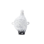 Hand-cast with an exquisite rounded silhouette, this vase features a dramatic white and black gradient finish which gives each piece a unique distressed character. Two petite handles lend a vintage charm, while a contrasting white decorative ball perched on top adds a modern twist.