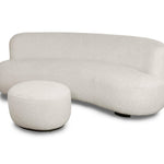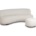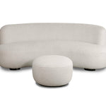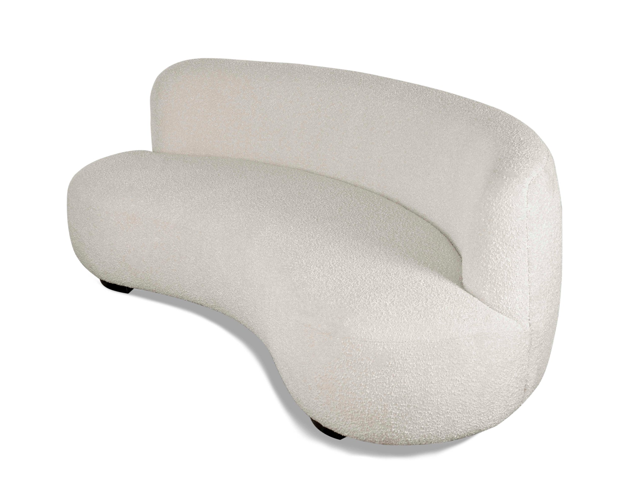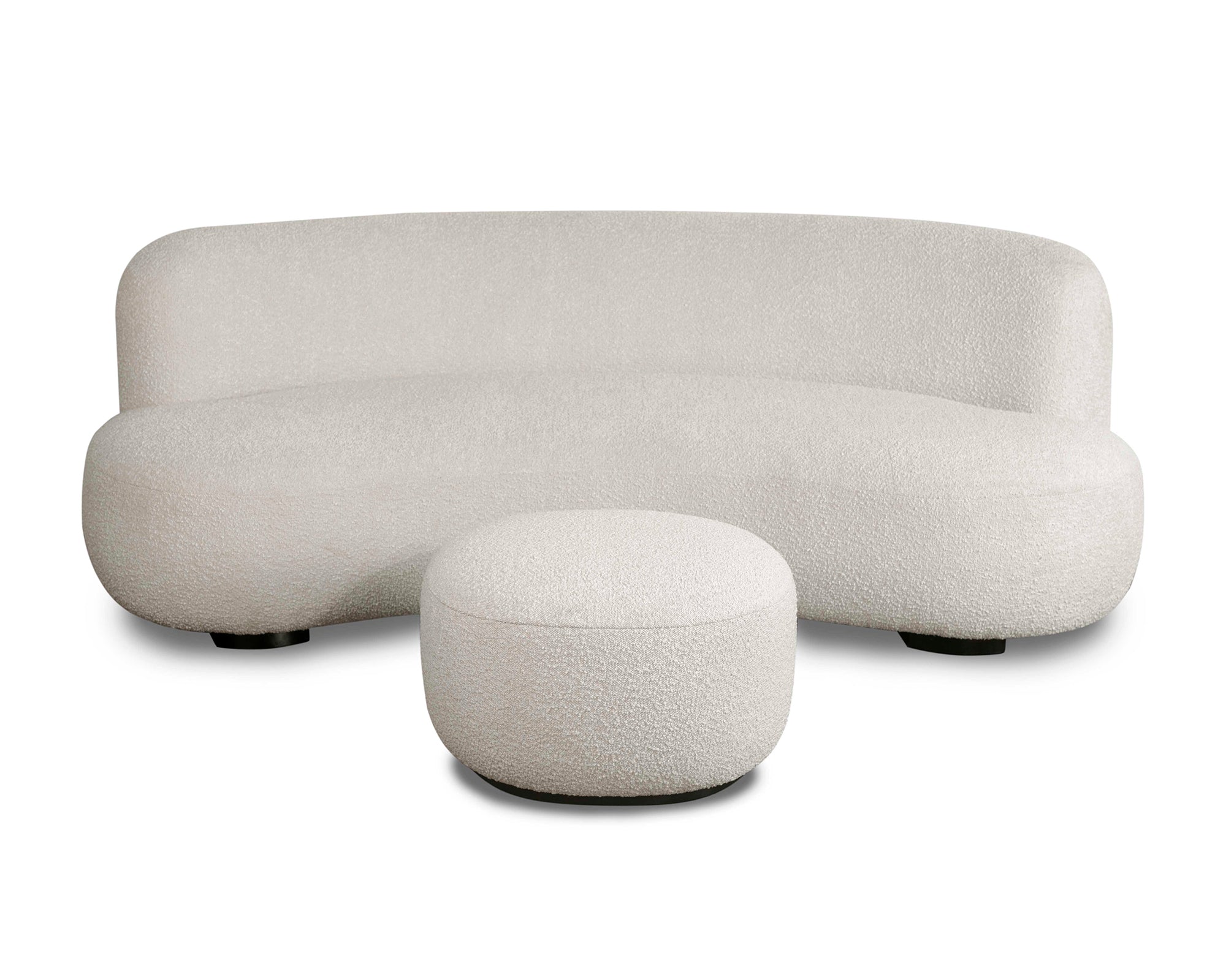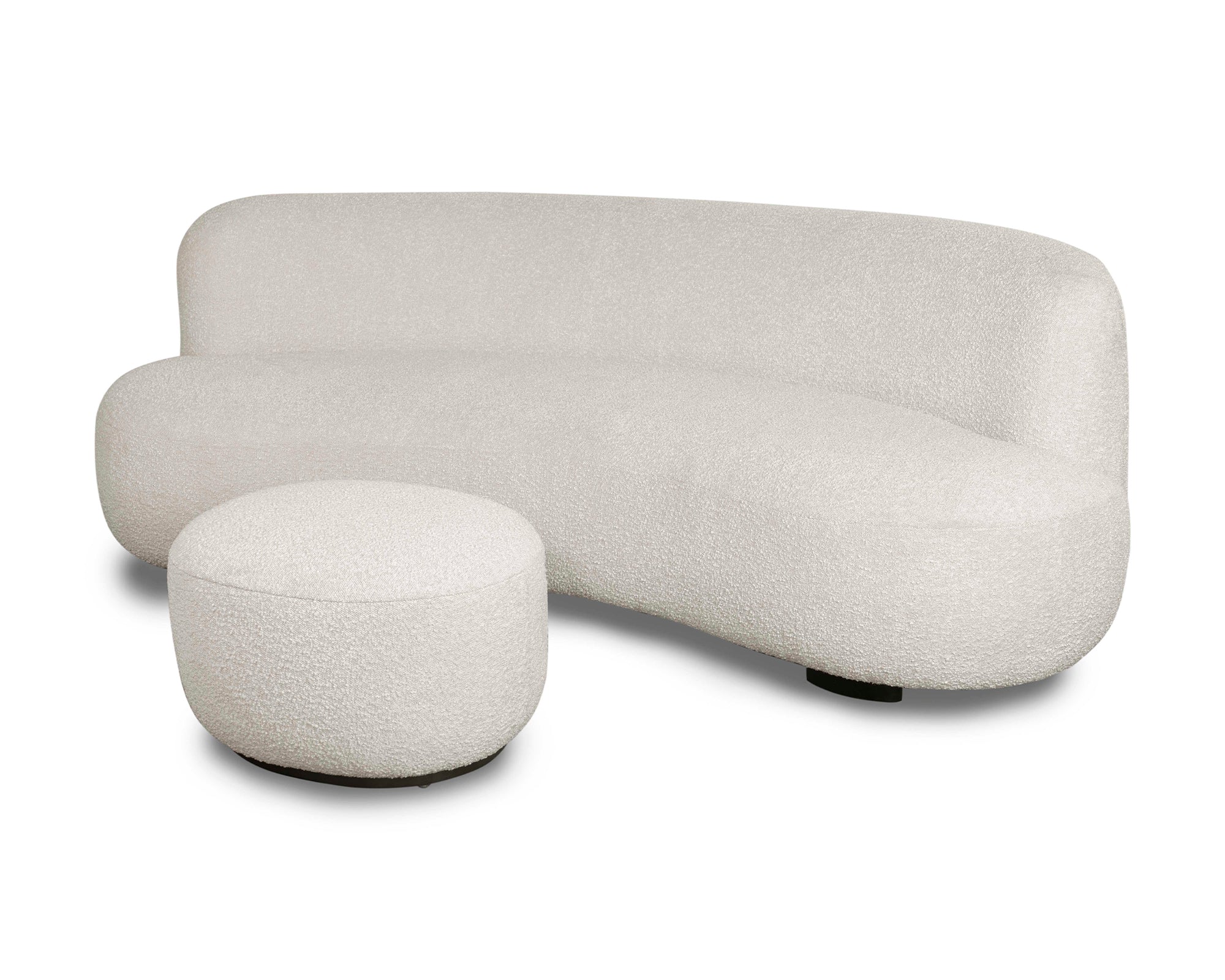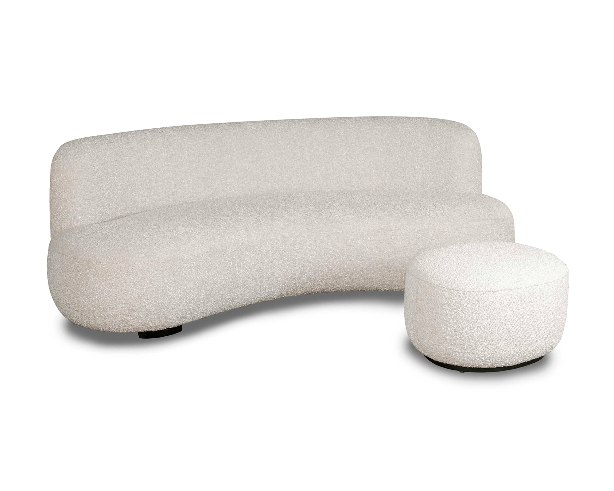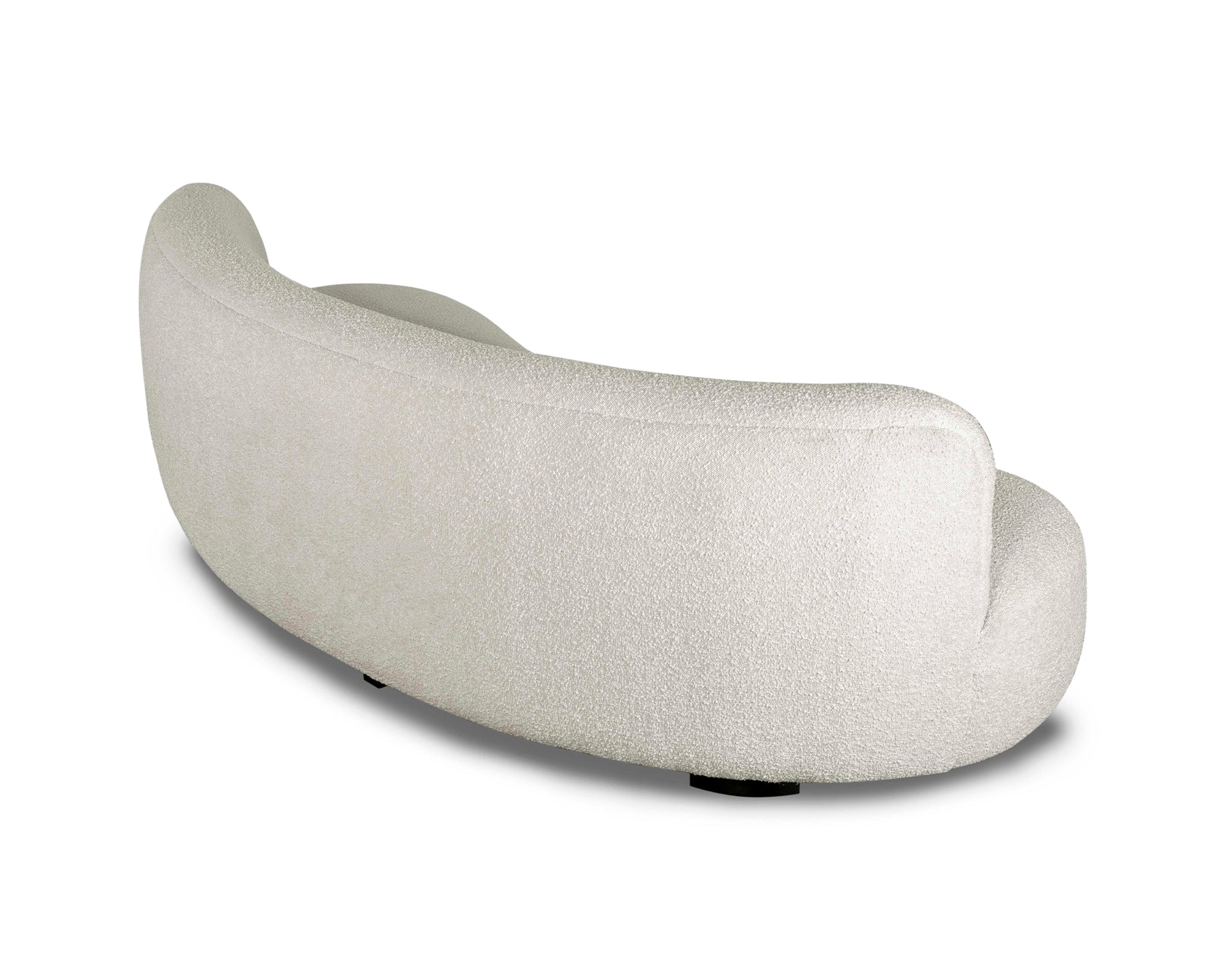 Upholstered in soft, sand-coloured boucle fabric, the Polter Sofa boasts refinement and grandeur of the highest degree. Gentle curves are paired with sleek black feet to create the illusion of floating, whilst its plush seat ensures comfort. This is a sofa you will want to curl up on after a long day. Embellish with a couple of bold scatter cushions to elevate this piece with a striking contrast.