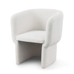 Drawing inspiration from the traditional Greek Lyre, its shape is thoroughly unique with its curved base and all-encompassing backrest. A padded seat ensures comfort and support for an effortless dining experience. From the base to the backrest, its entirety is upholstered in a lovely, Boucle Sand fabric for a soft, visually appealing finish.