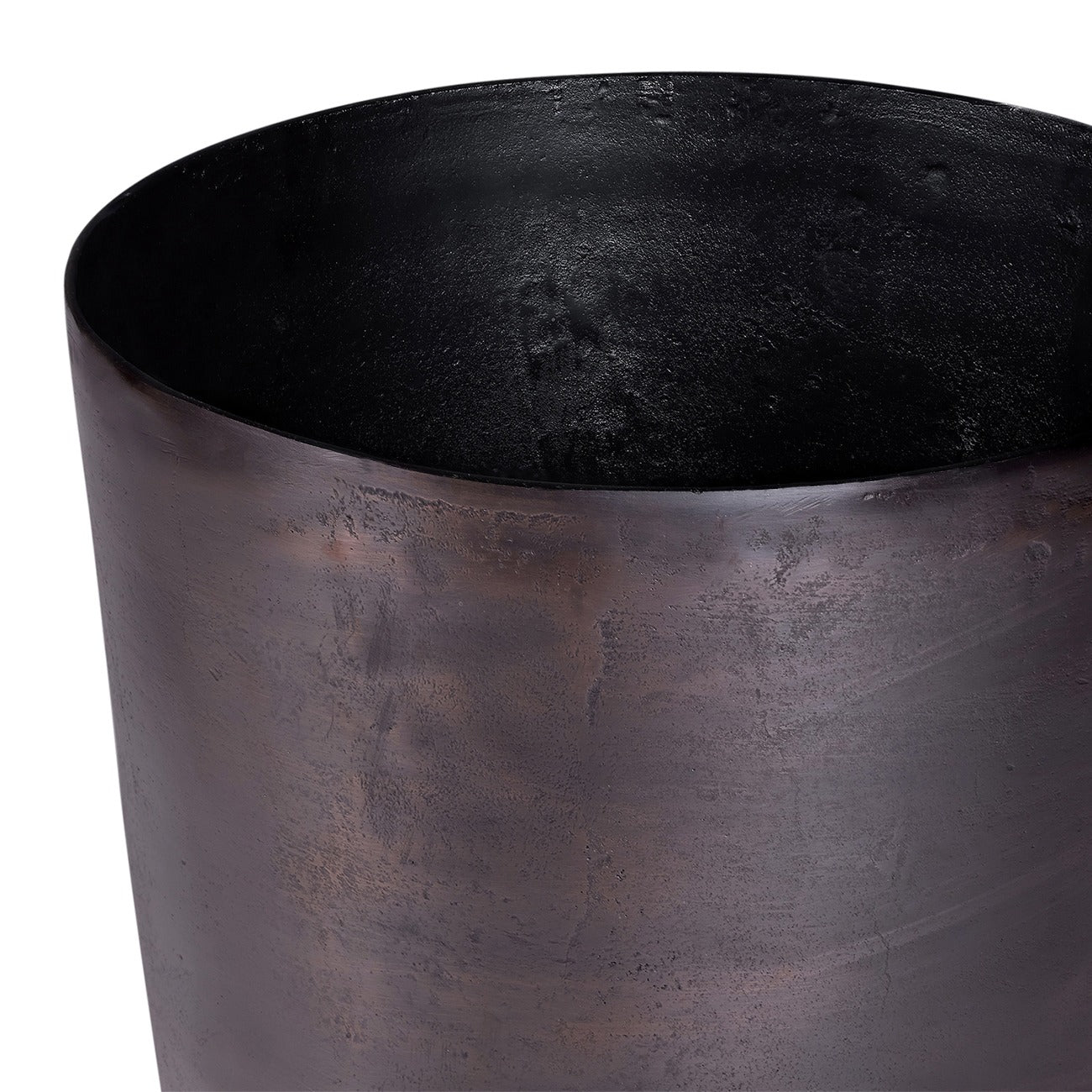 Crafted from cast aluminium and finished in a brushed burnished bronze, this elegant piece balances durability with refined design. Its smooth, rounded form creates a soft yet striking silhouette, perfect for showcasing indoor greenery or standing alone as a sculptural accent. The rich dark bronze tones introduce warmth and texture, complementing minimalist, industrial, or luxe interiors with ease.