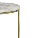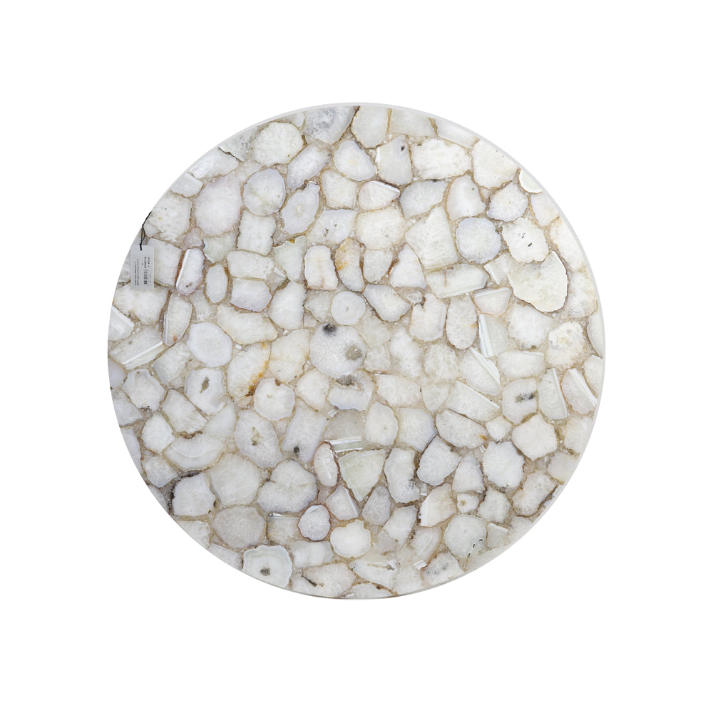 Elegant white agate is polished and refined to form a smooth, delightful surface. The style is resplendent, adorned with intricate detailing and delicate features. If you appreciate pieces with an Art Deco touch, this table is indeed a perfect match for you. The gentle curves of the rounded base complement the antique bronze finish exquisitely.