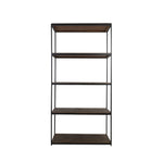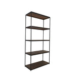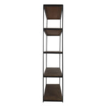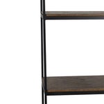 Its beauty lies in the striking chevron style design of the all-brown wooden shelves, providing a visually pleasing effect. Four spacious shelves offer ample room for your storage and display needs. A touch of the tropics resonates through the design, while the bold black metal frame provides a stark contrast, adding an element of serene sophistication.