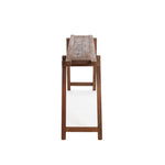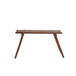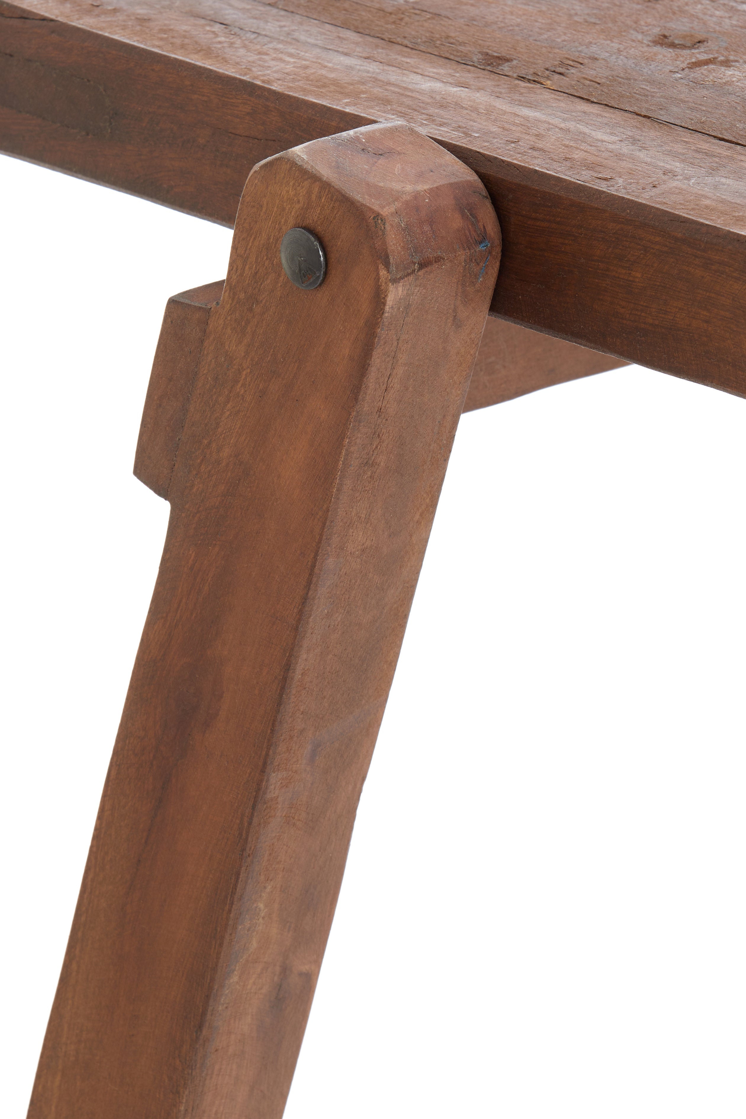 With a smooth rectangular top and angled legs, all crafted from warm brown wood, this piece suffuses any space with a cosy, rural appeal. It is ideal for a hallway or entryway, offering a welcoming touch. However, its simple yet characterful design also makes it a standout addition to a contemporary living space, where it adds an earthy allure.