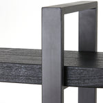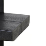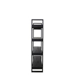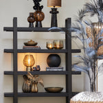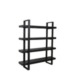 Expertly crafted from a durable blend of black metal and chunky mango wood, it stands as a testament to both longevity and style. The sleek, angular frame contrasts beautifully with the four robust wooden shelves, all enveloped in a classy black finish that exudes refined elegance. As much a functional shelving unit as a luxurious design statement, it transforms your room – be it a living area or study – into an exhibition of your cherished possessions.