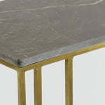 With sleek style and a flawless finish, the Roshan Side Table is a tasteful choice for contemporary living spaces. Its angular metal frame is finished in warm, brass whilst its top is made from brown marble for a look of the utmost refinement. As part of your main living space, it is guaranteed to excel, and with a frame that can slide under your sofa, it is well-suited to big and small spaces alike. A convenient platform for drinks and remotes, or a place for craftwork, the Roshan Side Table is a versatile piece you are sure to love.