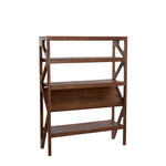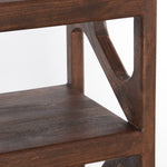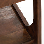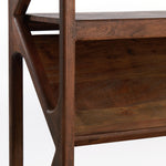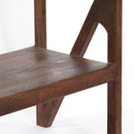 Exquisitely crafted from pure acacia wood, its geometric frame—a dance of sleek lines and bold angles—demands attention. Boasting five strategic shelves including the top, it elevates storage to an art form. An intriguing slanted shelf, perfect for showcasing an open book, beckons readers and dreamers alike.