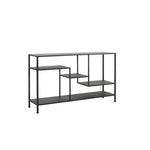 The Yvana Console Table is flawless elegance that will allow you to make the most of your space. Crafted from a combination of wood and metal, this piece is as sturdy as it is stylish and with a smooth top, bottom, and stepped shelving there is plenty of room for displaying your favourite ornaments and photographs. Accentuated by a simple but classy matt black finish and subtle geometric appeal, the Yvana Console Table can blend into most design schemes with ease be it contemporary or traditional. Style and convenience where you need it the most.