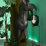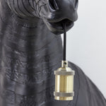 The bold, quirky style of the Zebra Wall Light will inject a sense of playfulness into any space. Made from synthetic plastic, this lovely zebra will appear to be leaping directly from your wall of choice. It is finished in a classy matt black and features intricate detailing and texture for an exquisite look that is certain to turn heads. A single light fixture is suspended from its mouth, allowing this charming zebra to light up your room in style. Wherever you need a little character, the Zebra Wall Light brings all of that and more. An eccentric light, for whimsical interiors.